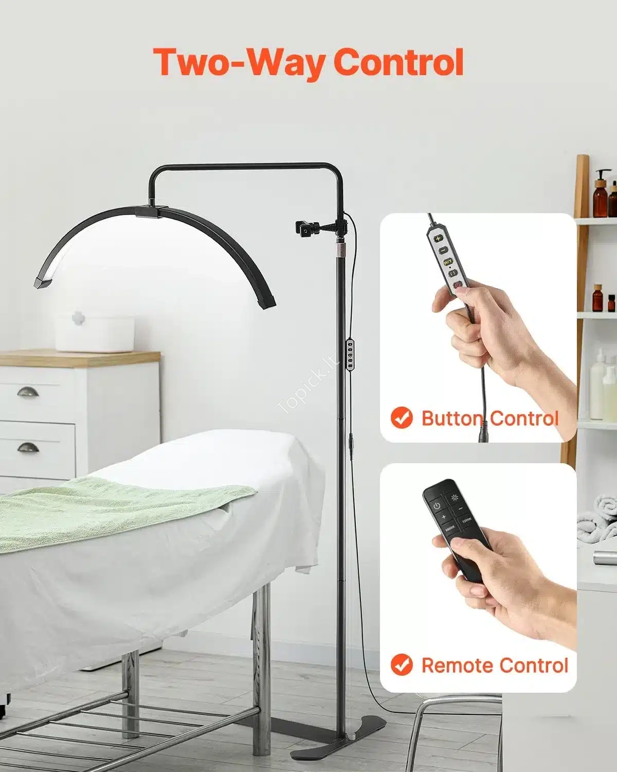 Jei dirbi blakstienų, nagų, makiažo srityje ar atlieki kitas smulkias grožio procedūras, ši stovinti pusmėnulio formos LED lempa yra privaloma Tavo studijos dalis! Dėl savo dizaino ji sukuria vienodą, švelnų, be šešėlių apšvietimą, leidžiantį matyti kiekvieną smulkmeną. Maksimalus aukštis iki 181 cm ir lankstus reguliavimas leidžia nukreipti šviesą ten, kur jos labiausiai reikia.