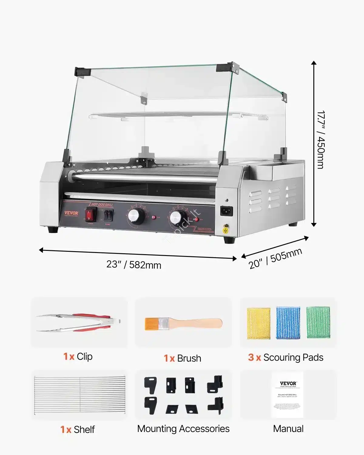 - Apsauginis Dangtis: Komplekte yra dangtis iš grūdinto stiklo ir PC plastiko, kuris apsaugo dešreles nuo dulkių ir padeda palaikyti šilumą, taip sutrumpinant kepimo laiką.