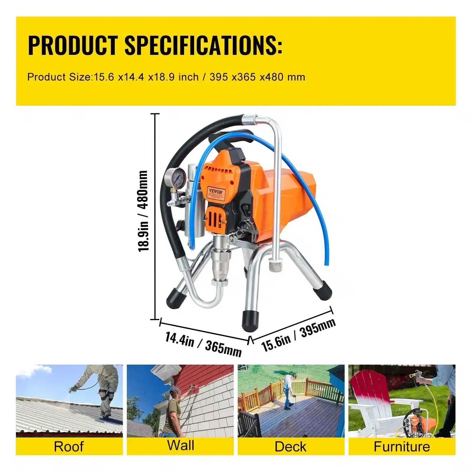 - Išskirtinė Galia: 2200 W galingas variklis užtikrina stabilų ir ilgalaikį darbą be pertraukų. Tai reiškia, kad galėsi purkšti be vargo net ir tirštus dažus.