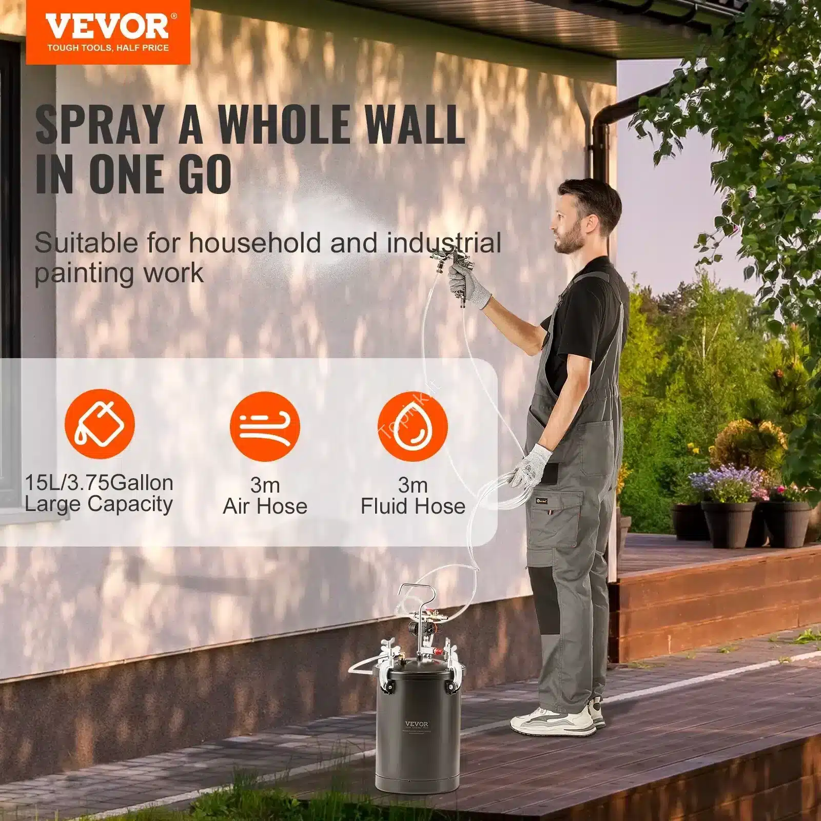 - 15 Litrų Talpa: Dirbk ilgai be sustojimo ir dažų pildymo.