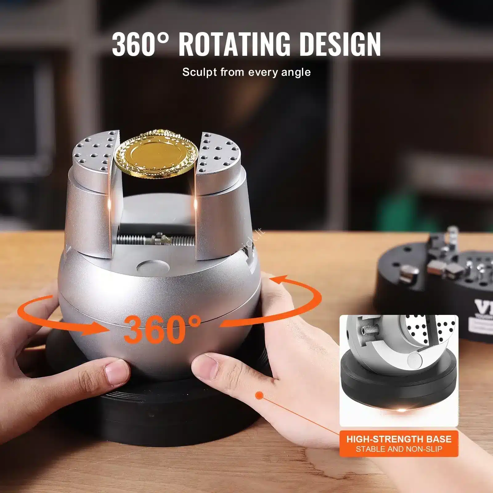- 360° Rotacija: Gali laisvai reguliuoti ruošinio poziciją ir kampą, o tai palengvina darbą su ypač smulkiomis ir sudėtingomis detalėmis.
