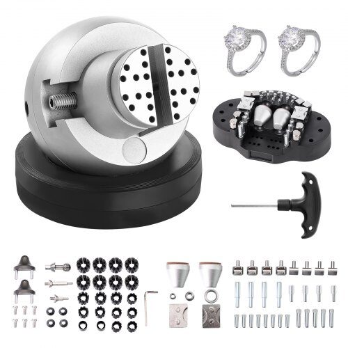 - Išskirtinė Komplektacija: Net 69 priedų komplektas, kuris apima įvairius žiedų, plokštelių laikiklius, kaiščius ir kitus profesionalius priedus. Tai leidžia tvirtinti bet kokios formos ir dydžio dirbinius.