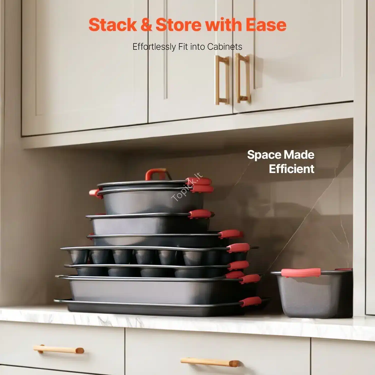 - Taupo Vietą Visos formos yra sukraunamos viena į kitą. Tai reiškia, kad visas gausus 10 dalių rinkinys užims minimaliai vietos tavo spintelėje.