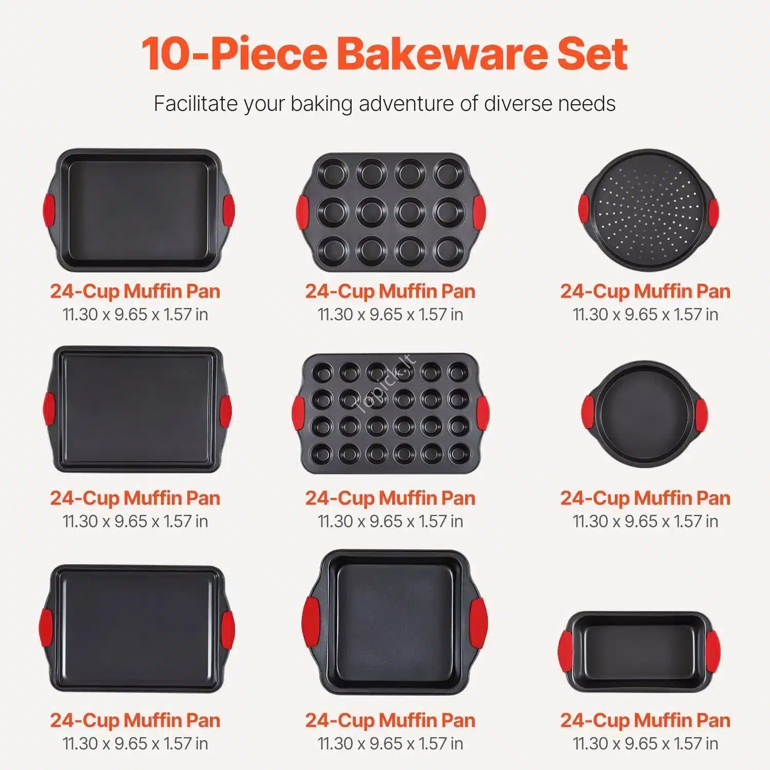 Jei mėgsti kepti ir ieškai universaliausio įrankių komplekto savo virtuvei, šis 10 dalių kepimo formų rinkinys yra tikras išsigelbėjimas! Jis puikiai tinka viskam – nuo sausainių ir keksiukų iki didelių mėsos kepsnių ar pyragų. Turėsi visas formas viename rinkinyje!