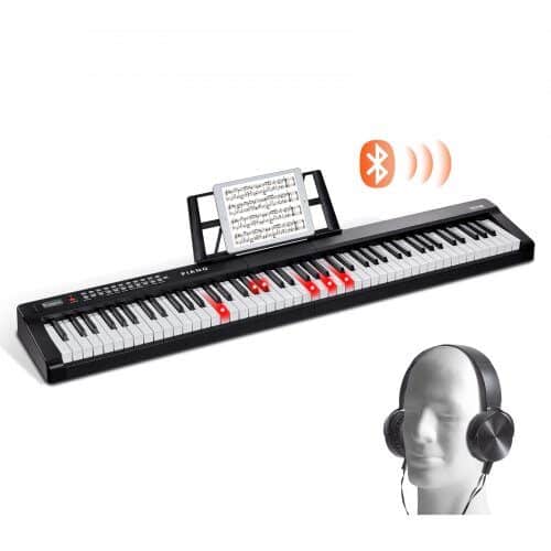 - Komplektacija: Į komplektą įeina viskas, ko reikia: sustain pedalas, patogios ausinės, mikrofonas ir lipdukai klavišams, kurie padės pradedantiesiems.