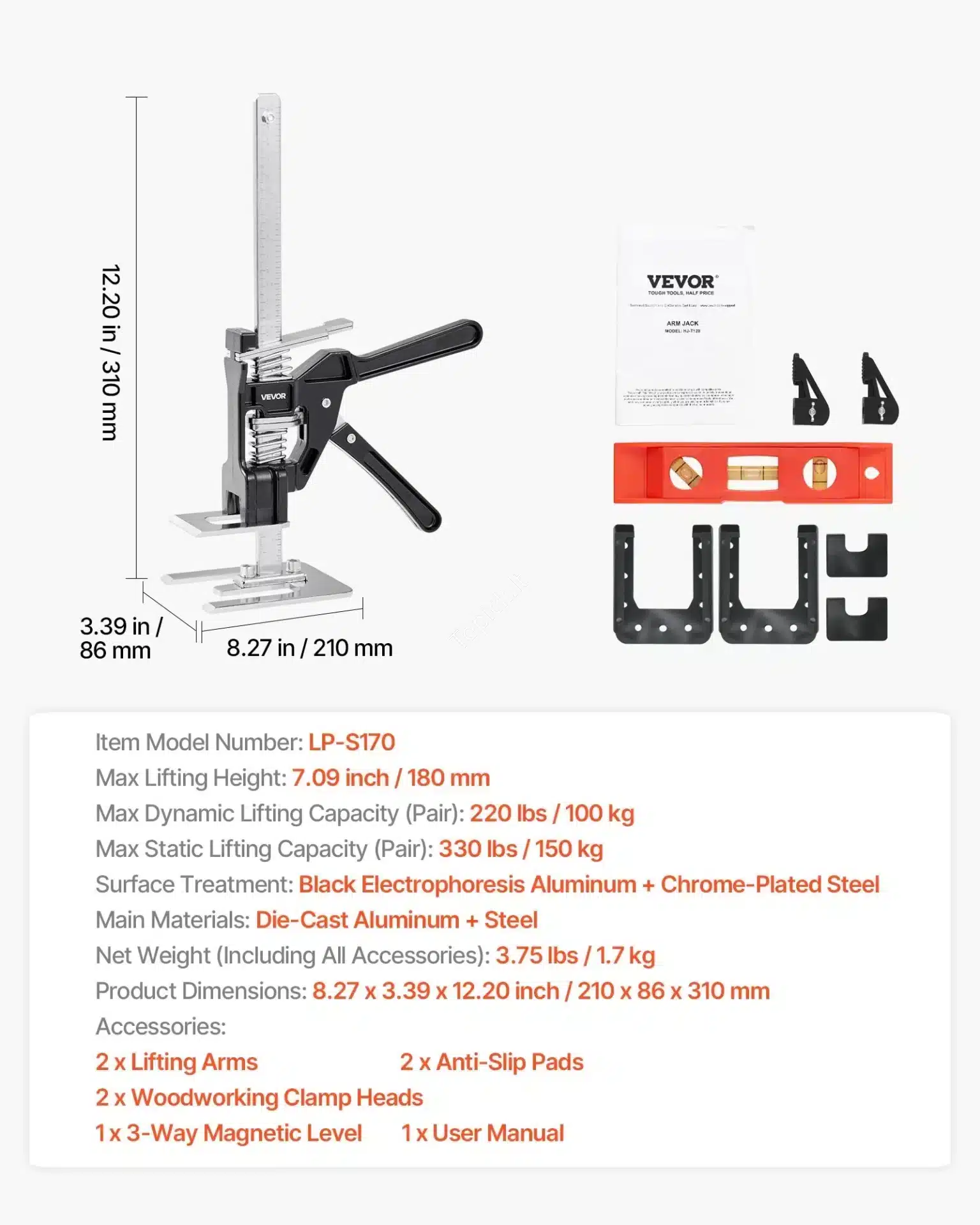 - Maks. Kėlimo Aukštis: 180 mm