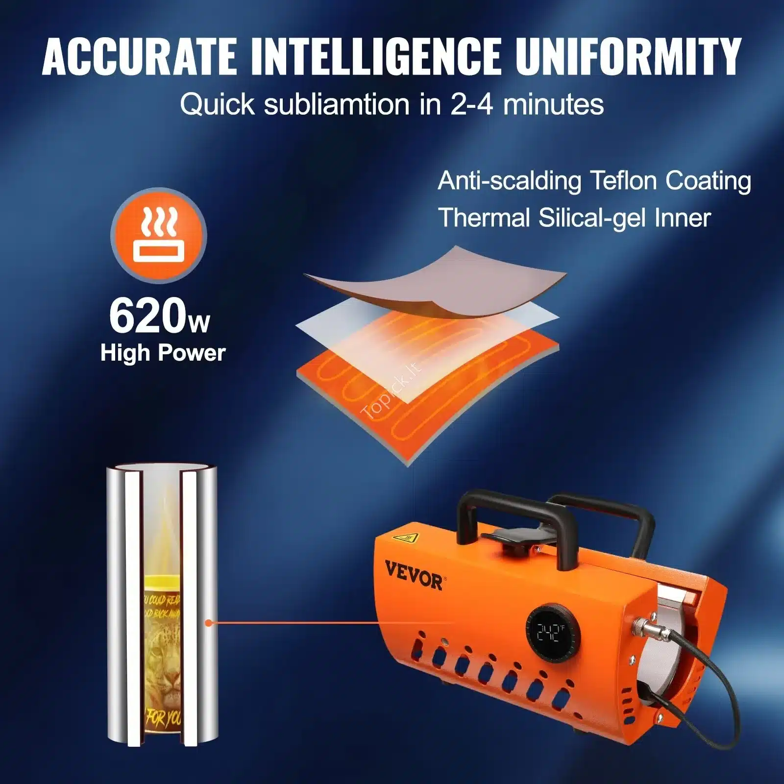 - Saugumas ir patikimumas: Su 620 W galia presas veikia efektyviai ir turi sustiprintą saugumą: dviguba valdymo grandinė nuolat stebi veikimą, o automatinio išsijungimo funkcija apsaugo nuo perkaitimo. Rinkinį taip pat sudaro karščiui atsparios pirštinės, sublimacinis popierius ir lipni juostelė. 🛡️