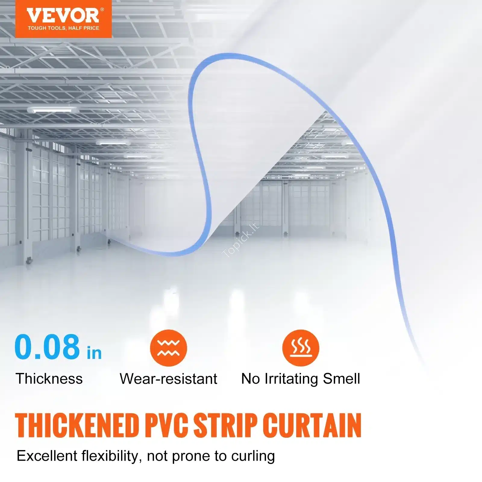 183 × 244 cm skaidri PVC juostinė užuolaida (2 mm storio)