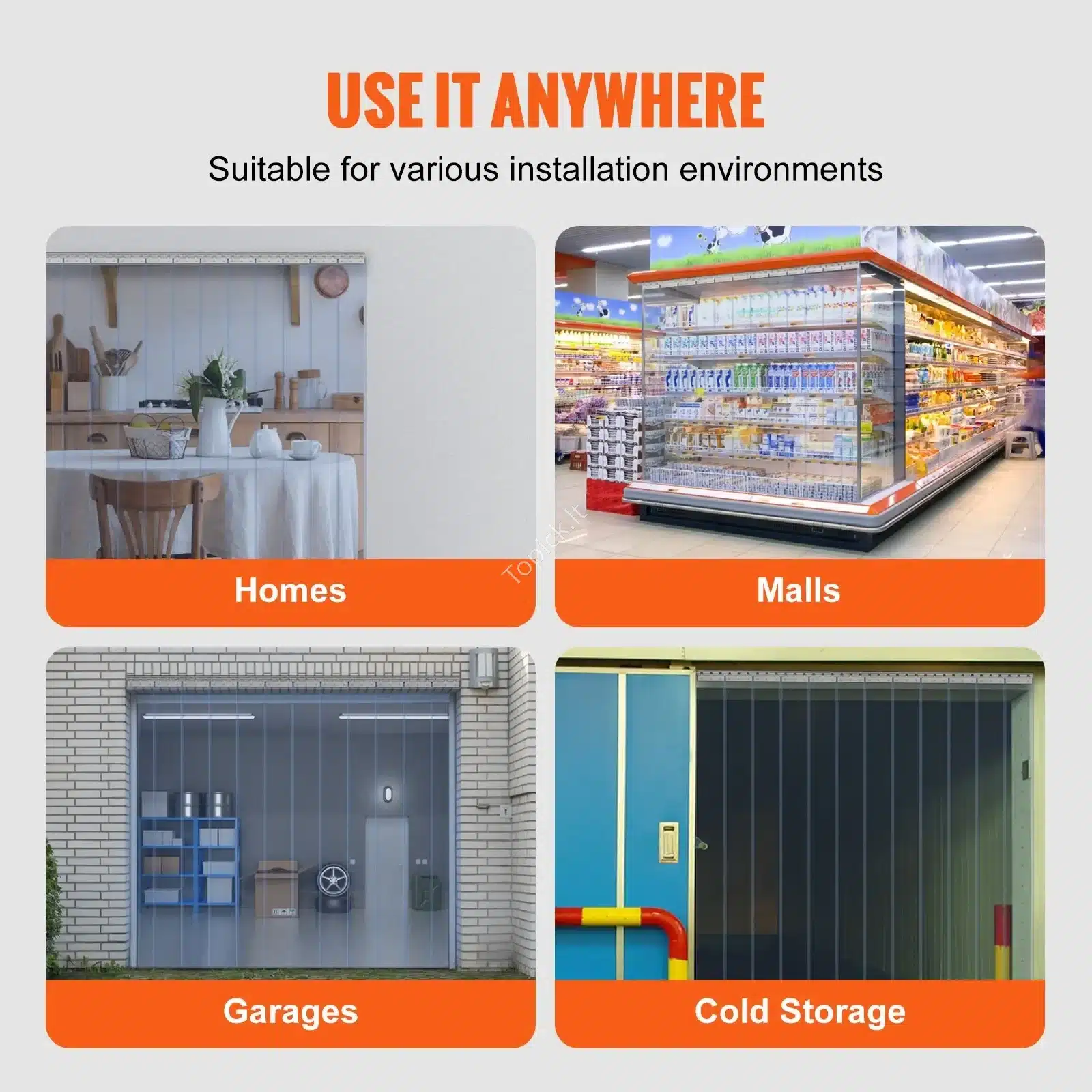 🌬️ 183 × 244 cm skaidri PVC juostinė užuolaida (2 mm storio) – šaldymo kameroms, sandėliams ir pramoninėms angoms
