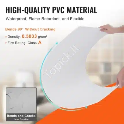 • Medžiaga: Pagaminta iš aukštos kokybės PVC plastiko, atsparaus ugniai (A klasė) ir dėmėms.