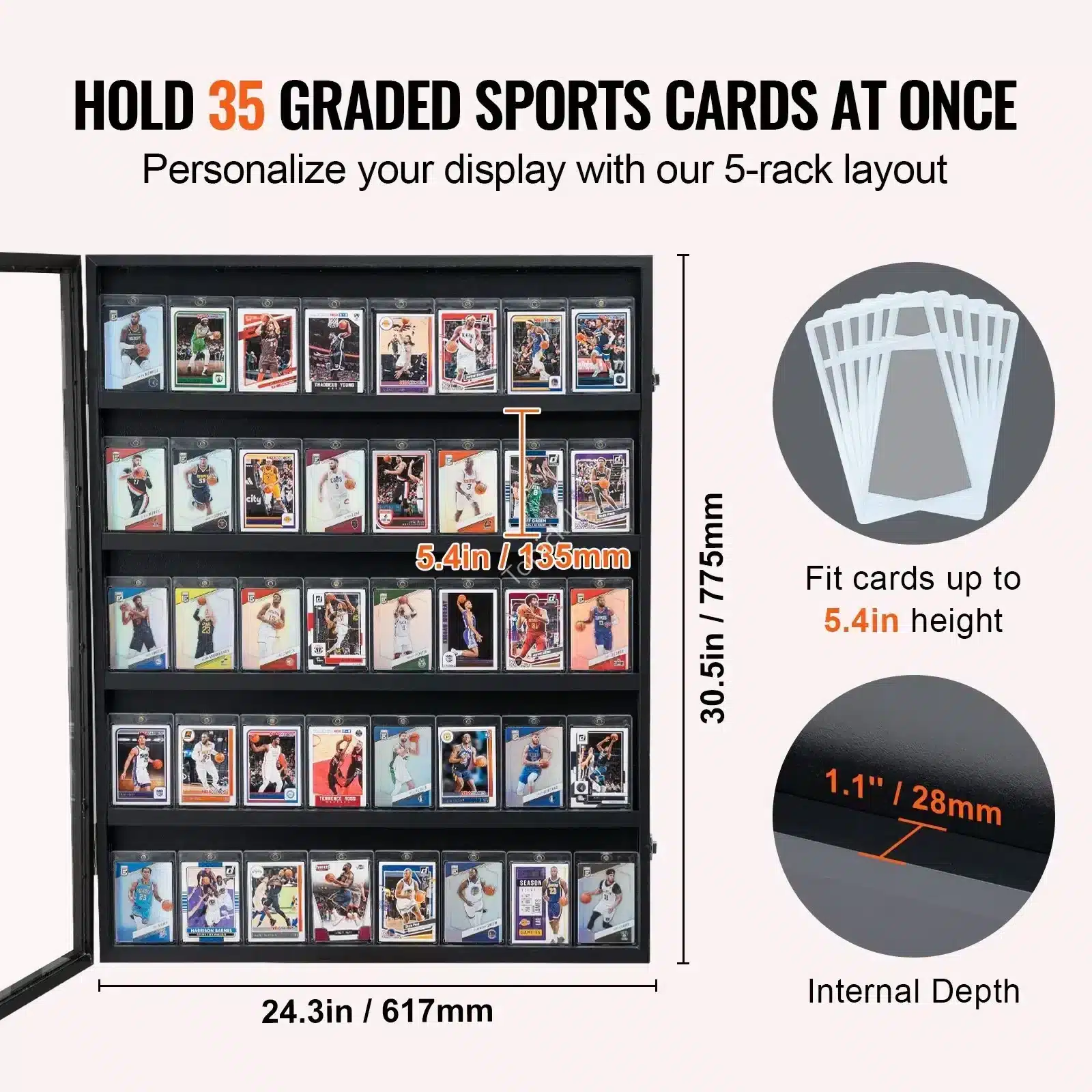 Jei turi didelę ir vertingą sporto kortelių kolekciją (krepšinio, futbolo, beisbolo, ledo ritulio ir kt.), šis rakinamas kortelių rėmas yra geriausias būdas jas eksponuoti ir apsaugoti! Ši vitrina talpina net iki 35 kortelių (graded korteles ar su apsauginiais dėklais) ir užtikrina, kad tavo kolekcija bus saugi nuo smalsių rankų bei žalingų saulės spindulių.