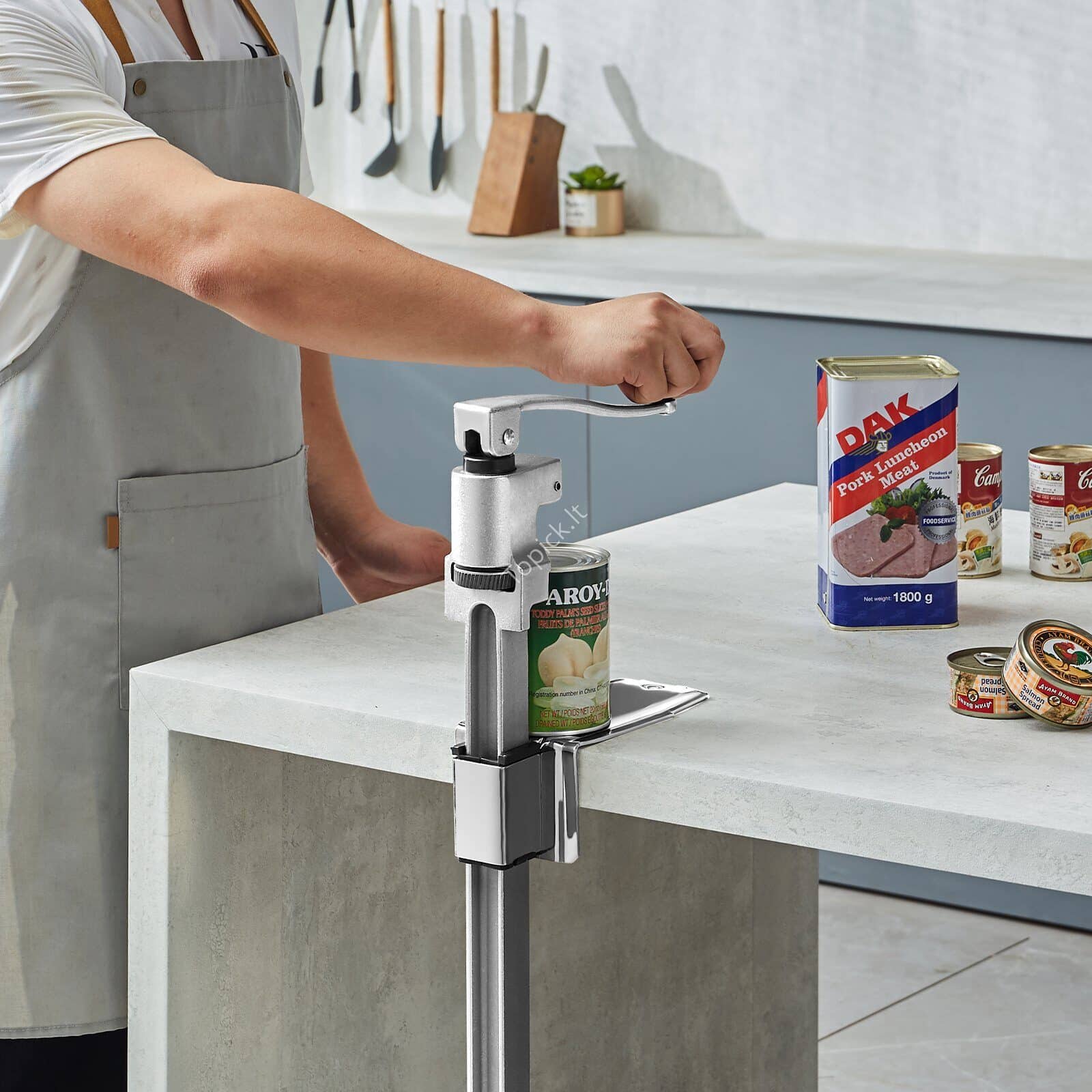 🥫 Reguliuojamas Profesionalus Rankinis Konservų Atidarytuvas – Su Tvirtinamu Pagrindu, Tinka Iki 40 cm Aukščio Dėžėms
