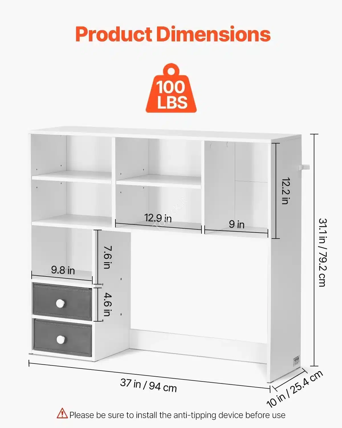• Didelė Talpa: Su matmenimis 94 x 25,4 x 79,2 cm ši lentyna sukurta taip, kad maksimaliai išnaudotų erdvę. Trijų lygių ir daugybės skyrelių dėka, galėsi tvarkingai sudėti knygas, dokumentus, kanceliarines priemones, ausines ir dekoracijas.