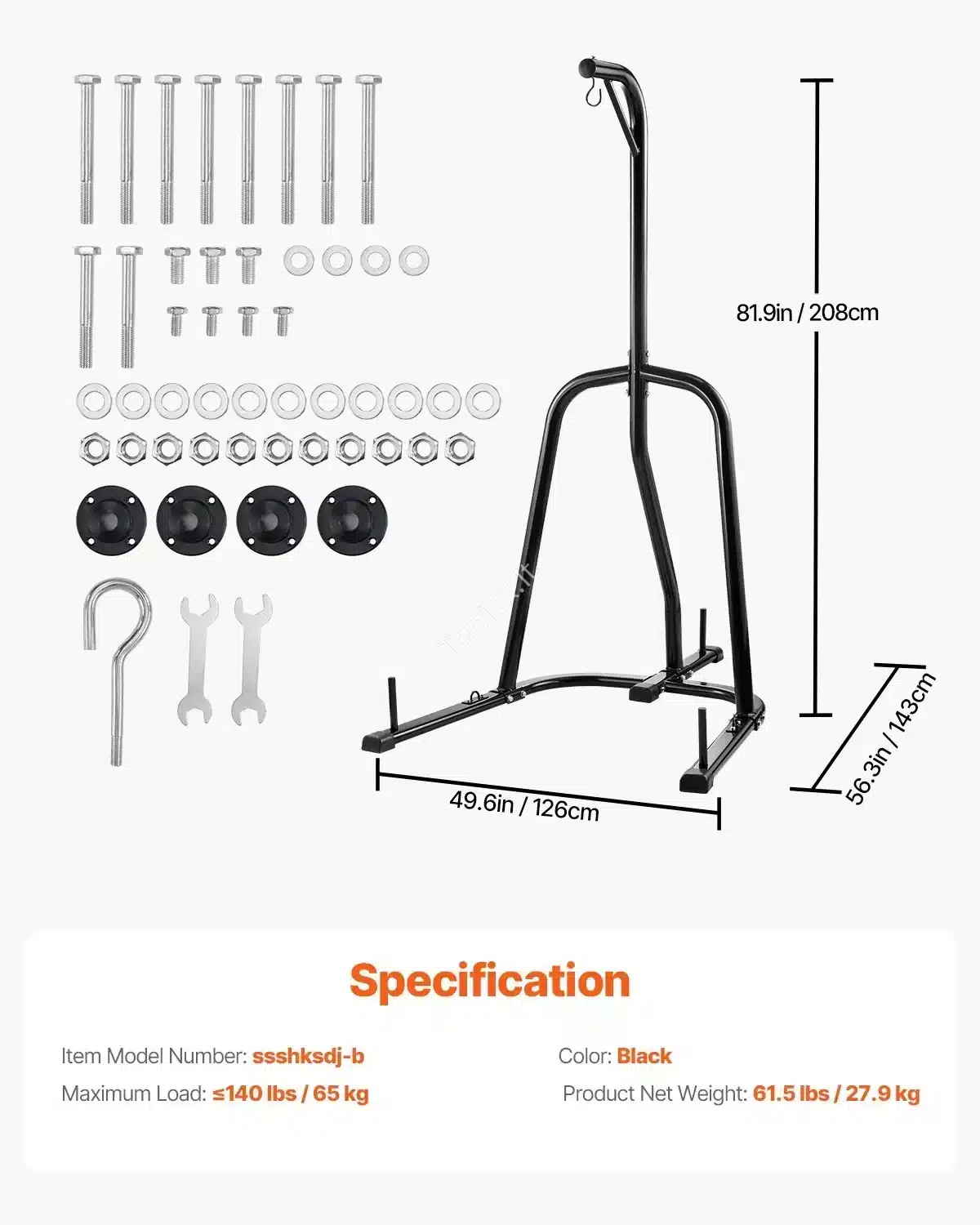 - Tipas: Reguliuojamas Sulankstomas Bokso Maišo Stovas (Folding Heavy Bag Stand).