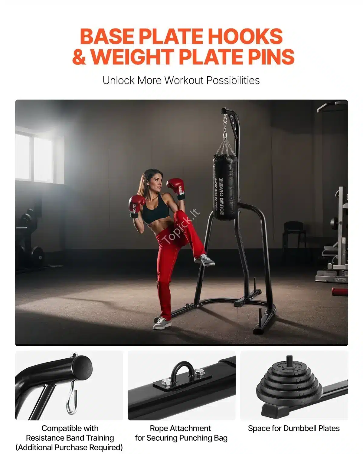 - Reguliuojamas Aukštis: Galima reguliuoti stovą net 48 cm diapazone iki maksimalaus 230 cm aukščio, leidžiant pritaikyti maišo aukštį pagal tavo ūgį ir treniruočių stilių.