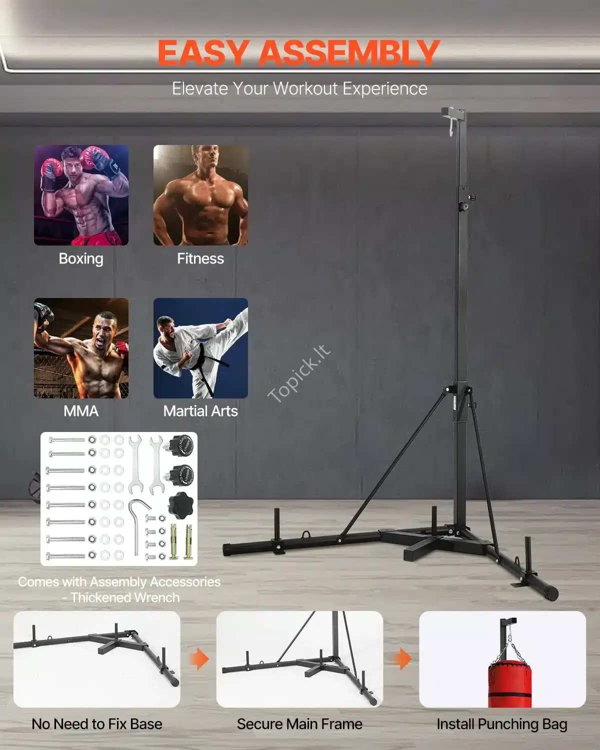 - Tipas: Laisvai Pastatomas, Bokso Maišo Stovas (Heavy-Duty Punch Bag Stand).