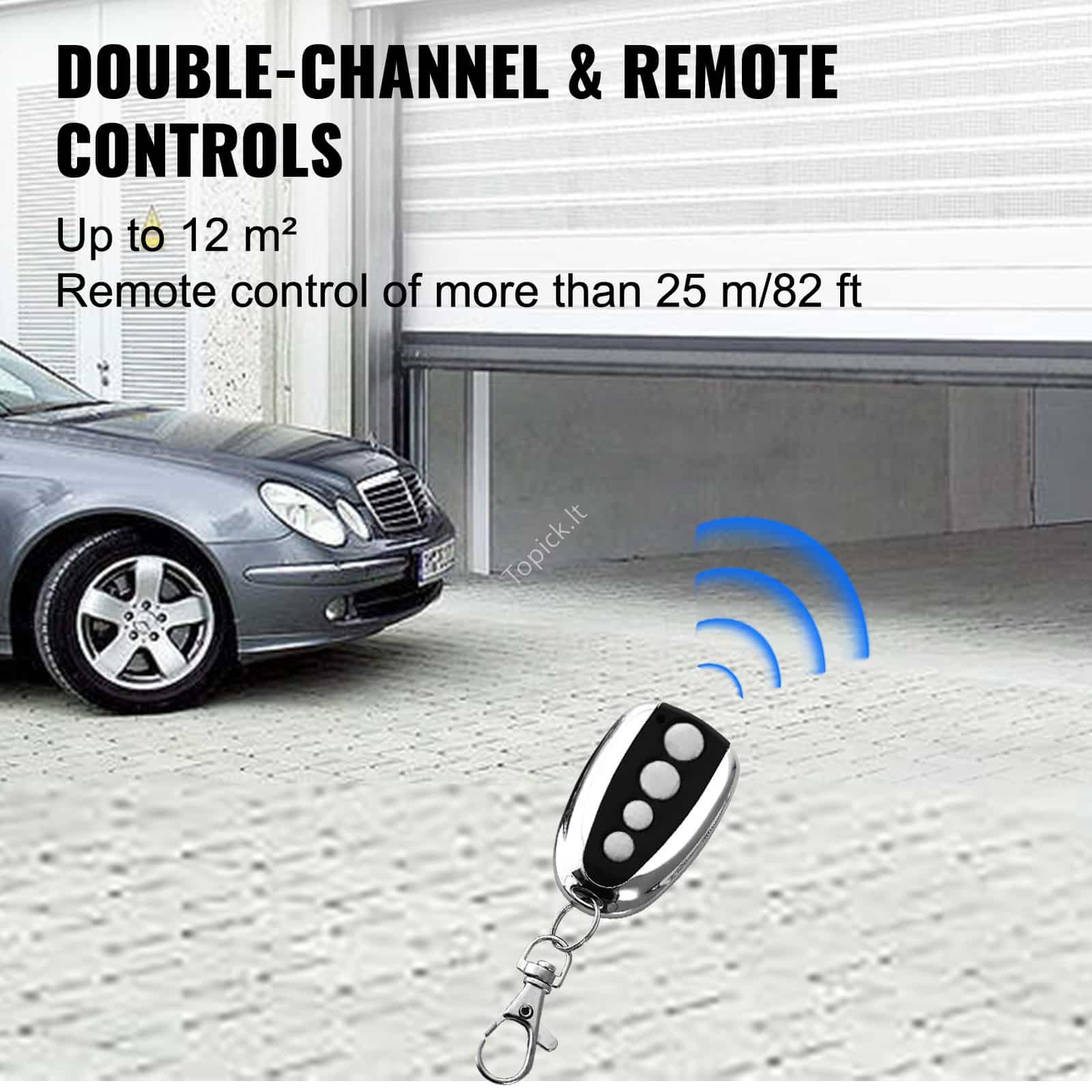 - Automatinis vartų atidarytuvas komplektuojamas su 2 dviejų kanalų belaidžiais nuotolinio valdymo pultais.