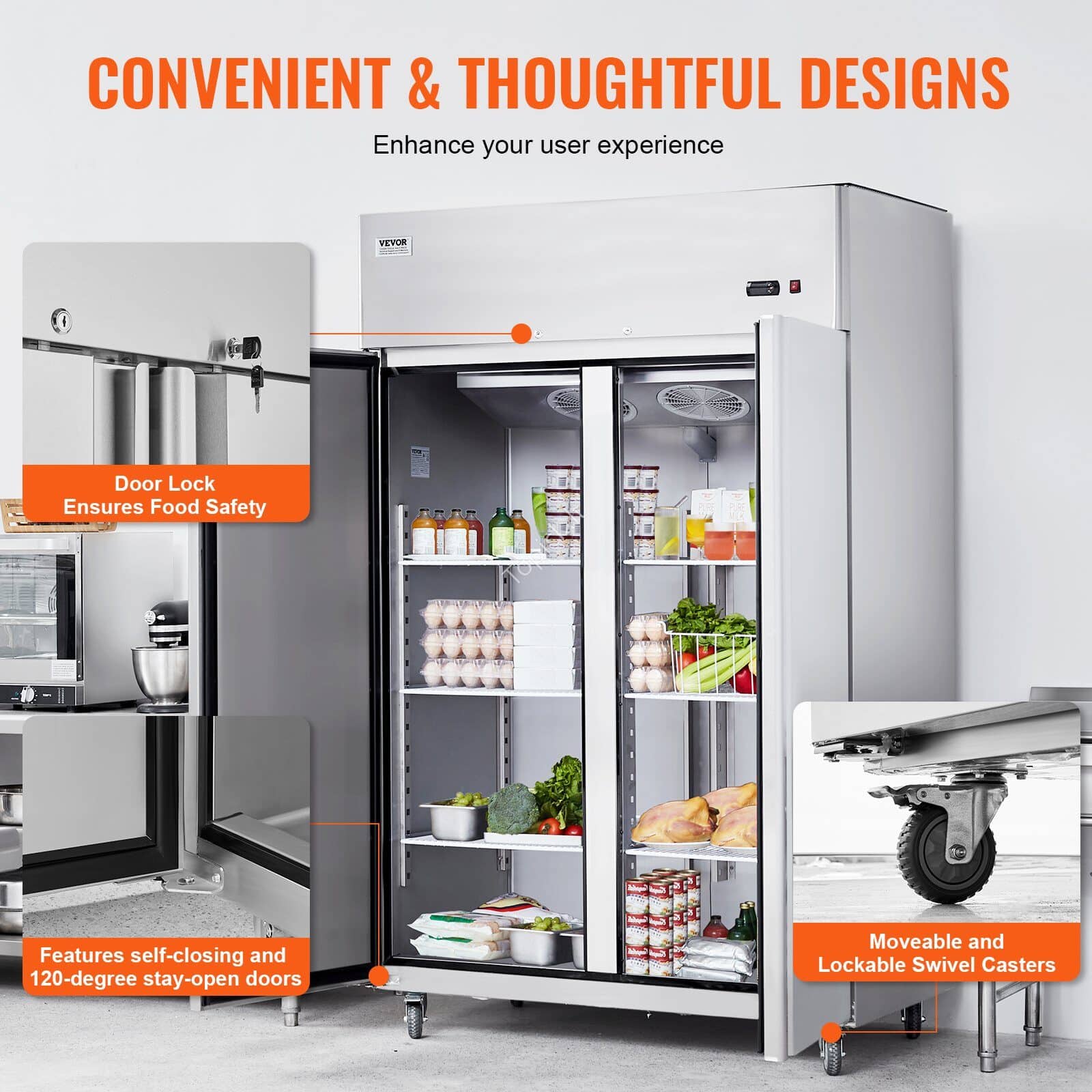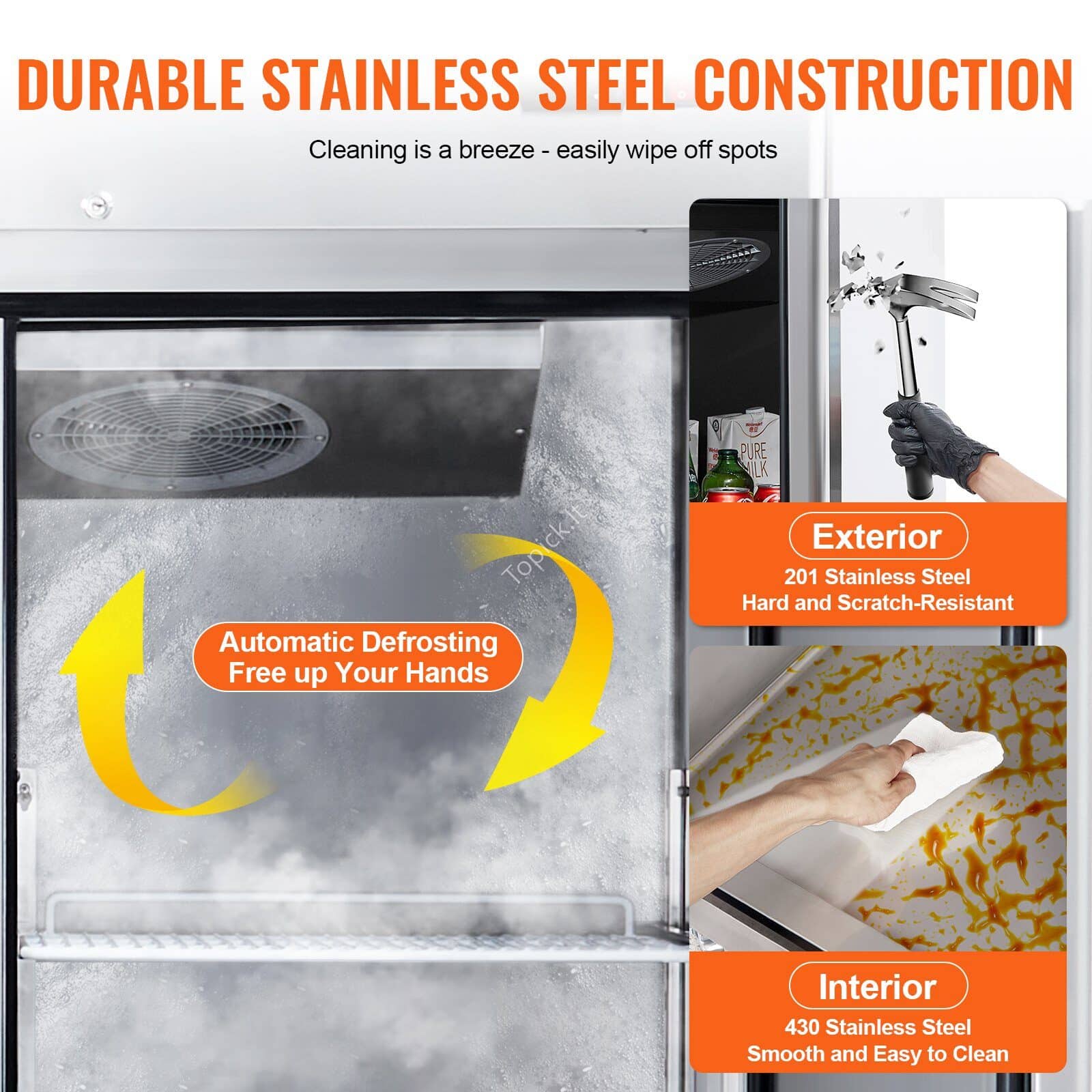 - Išsaugokite savo maistą ilgiau šviežią: 38,83 kubinių pėdų (1100 l) komerciniame šaldytuve efektyvus vėsinimas sujungiamas su skaitmeniniu temperatūros ekranu, kad jūsų ingredientai būtų švieži ir taupoma energija. Automatinė atitirpinimo sistema apsaugo nuo šerkšno susidarymo ir išsaugo skonius bei maistines medžiagas! Su išmaniuoju skaitmeniniu ekranu galite lengvai reguliuoti temperatūrą, kad ji atitiktų skirtingus jūsų ingredientų reikalavimus.