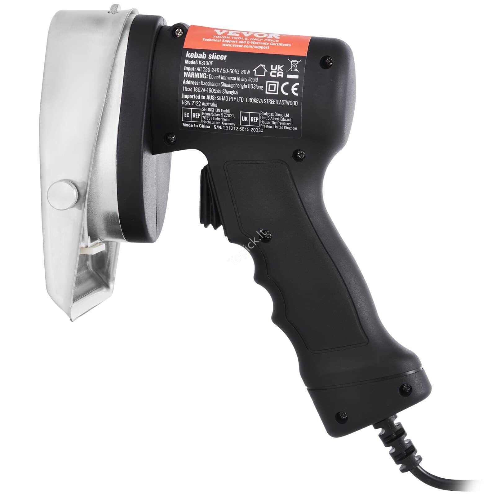 Ieškai profesionalaus kebabo pjaustytuvo savo maitinimo verslui ar asmeniniam naudojimui? Šis elektrinis kebabo peilis (80 W) yra efektyvus, patikimas ir sukurtas kasdieniam naudojimui – restoranuose, užkandinėse ar net namuose!