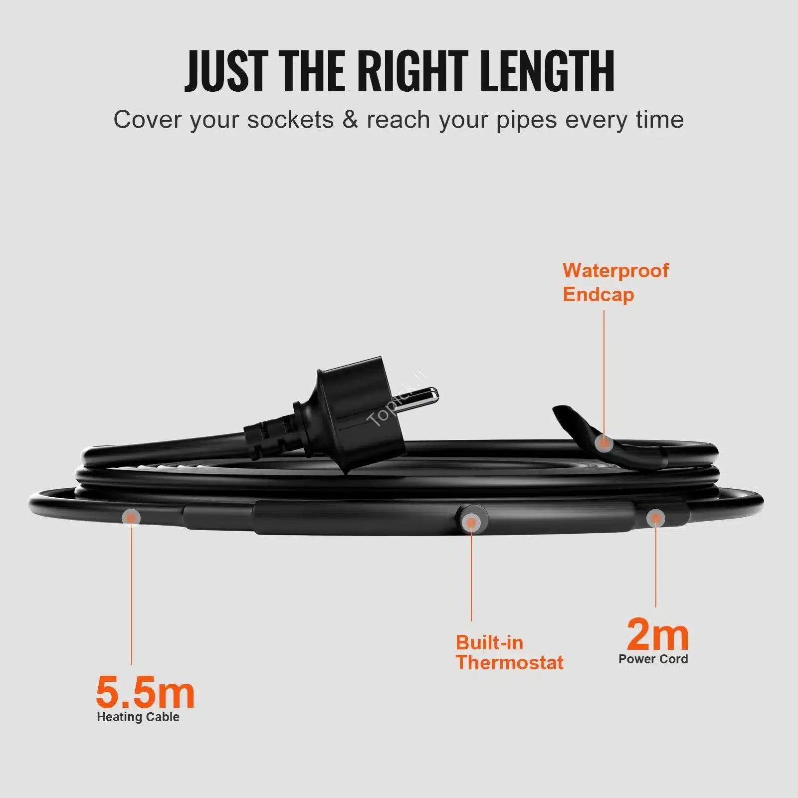 🔧 Lengvas montavimas: komplekte yra visi reikalingi priedai, leidžiantys lengvai ir greitai įrengti kabelį tiek tiesiai, tiek spirale aplink vamzdį.