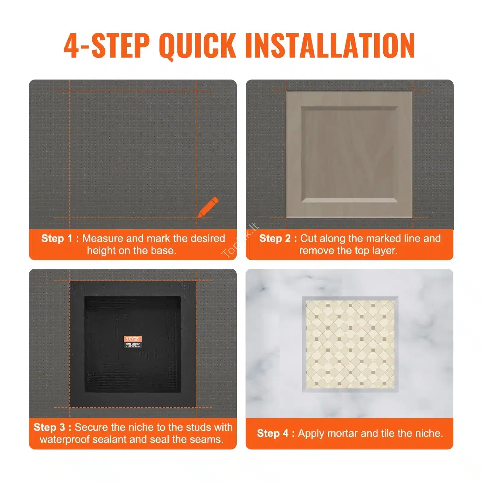 ✅ Tinka montuoti horizontaliai arba vertikaliai — niša lengvai pritaikoma įvairioms erdvėms: vonios kambaryje, virtuvėje, miegamajame.