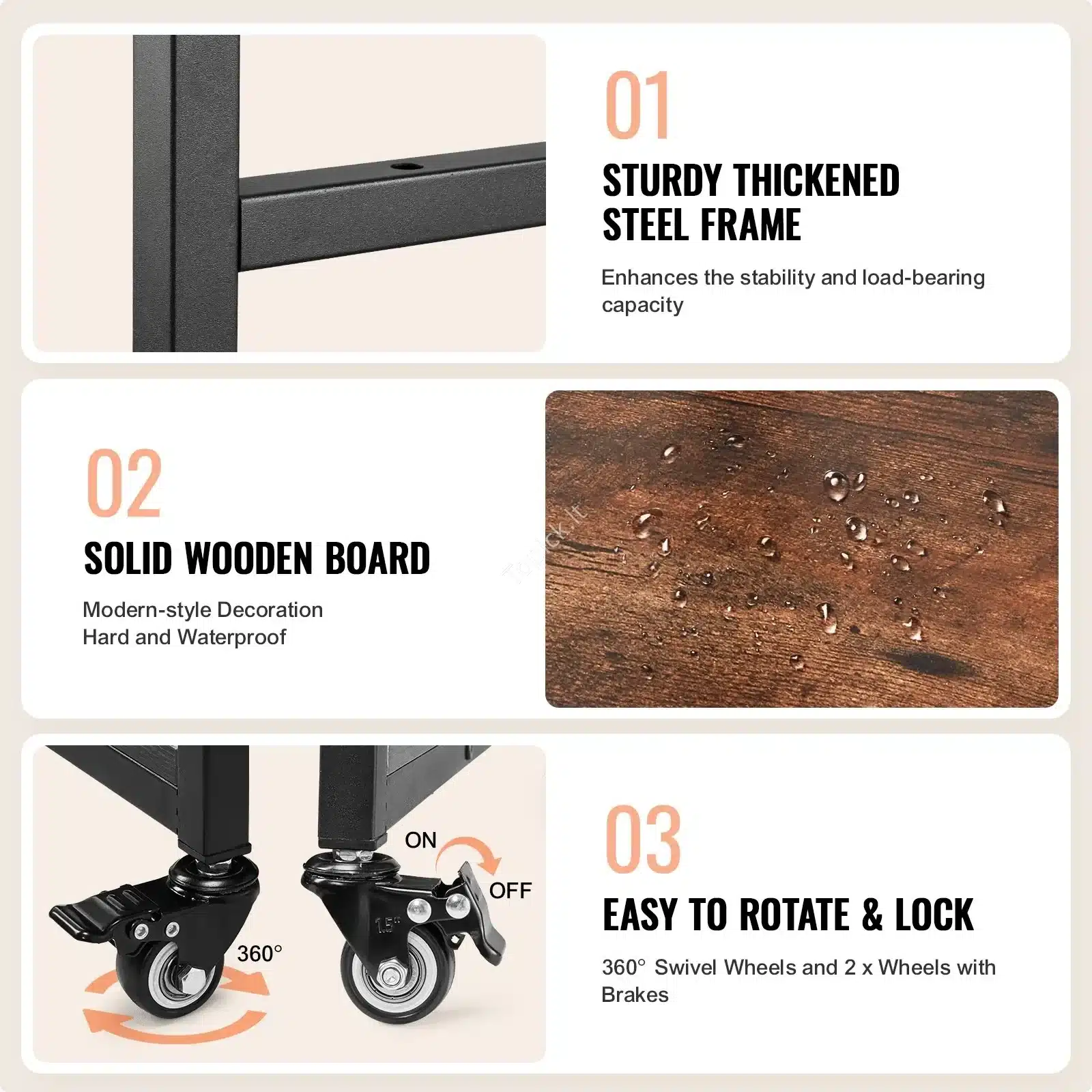 • Tvirtas plieninis rėmas su medinėmis lentynomis – stabilumas ir patikimumas