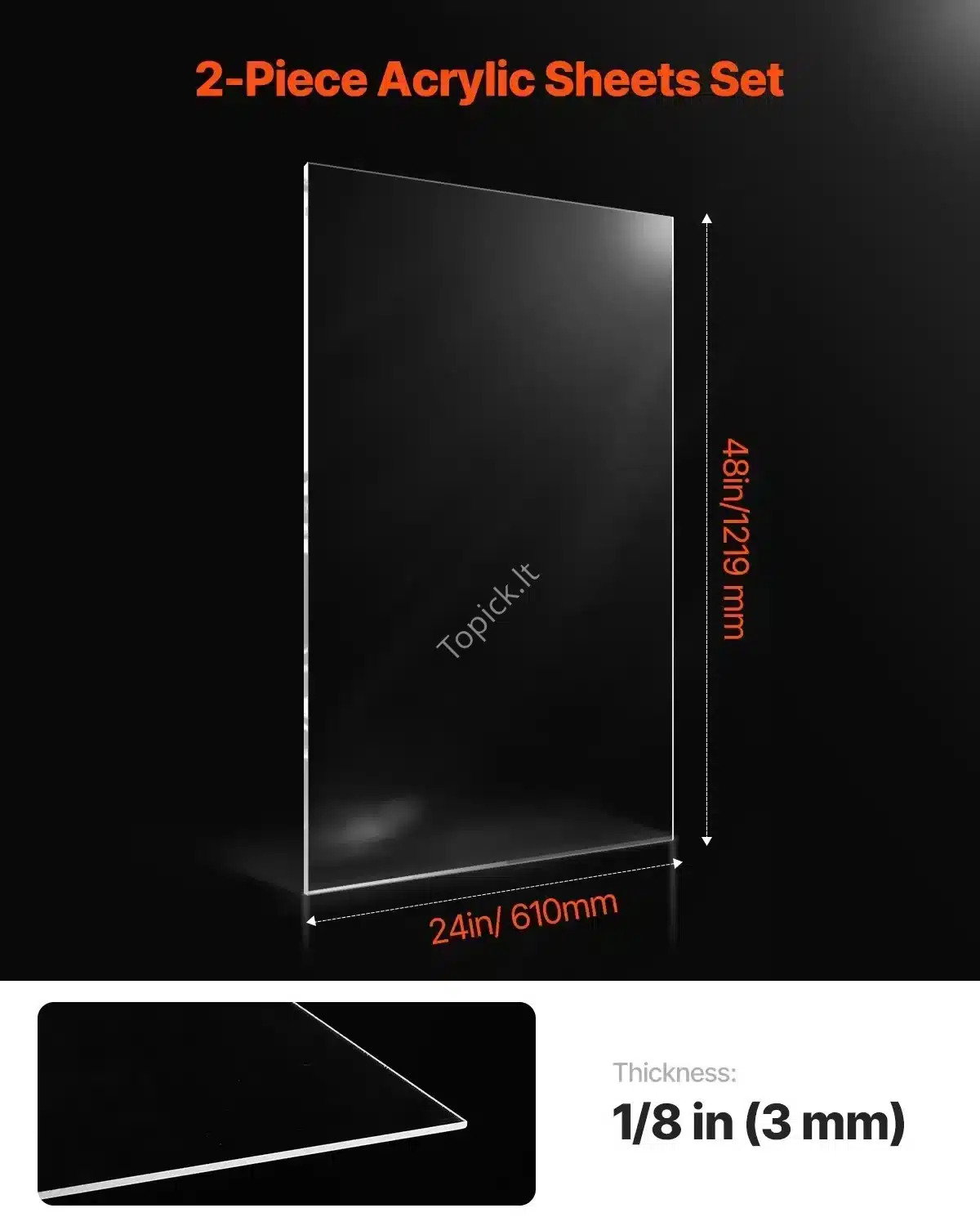 Sveikas! Jei tau reikia didelių, bet plonų ir lanksčių akrilo lakštų savo projektams, šis 2 vienetų rinkinys yra idealus. 3 mm storis puikiai tinka rėmams, ekranams ar smulkiems graviravimo ir pjovimo darbams!