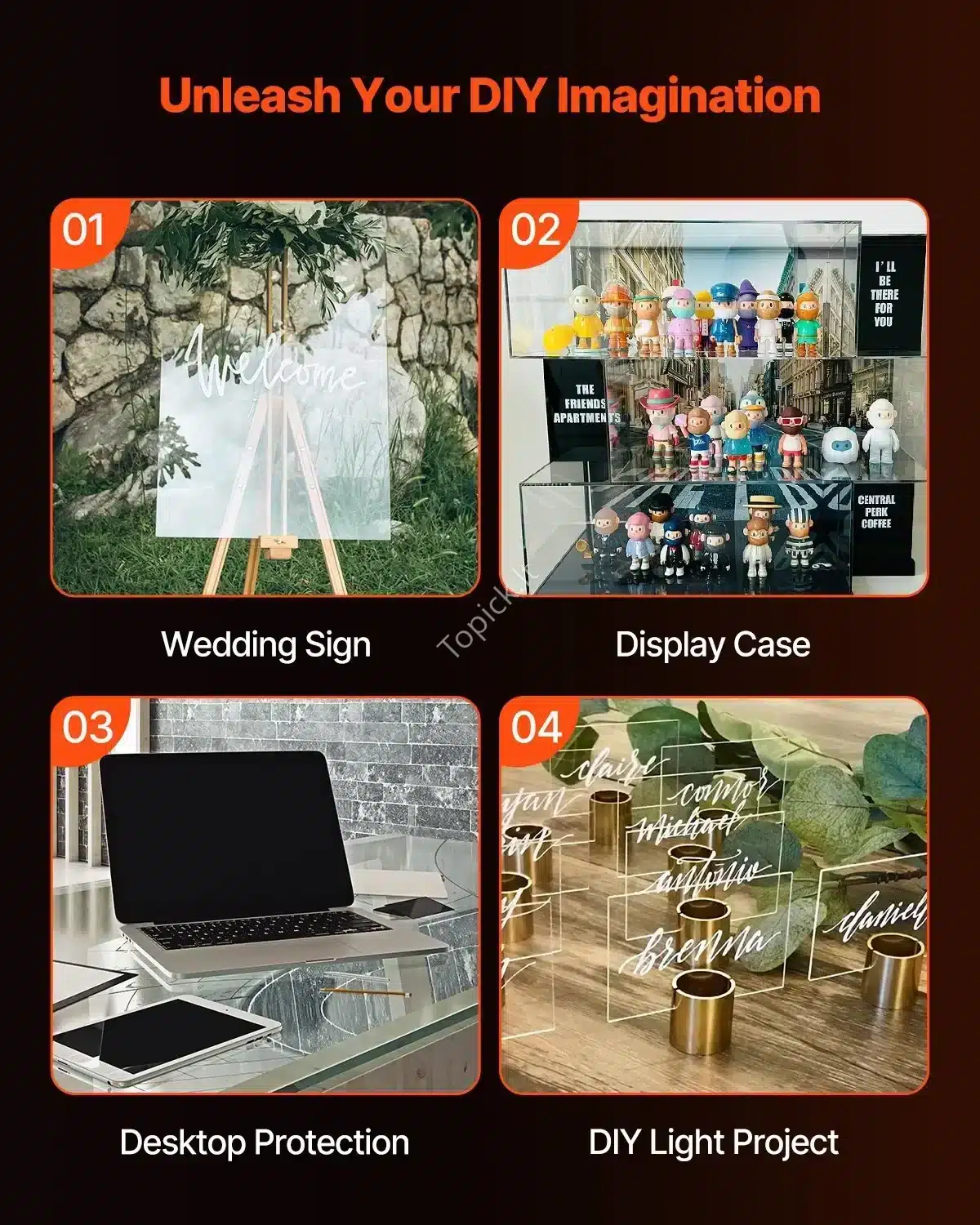 Puikus pasirinkimas norint sukurti apsaugines užtvaras, unikalius vestuvinius ženklus, baldų lentynas ar pakeisti senus langų stiklus.