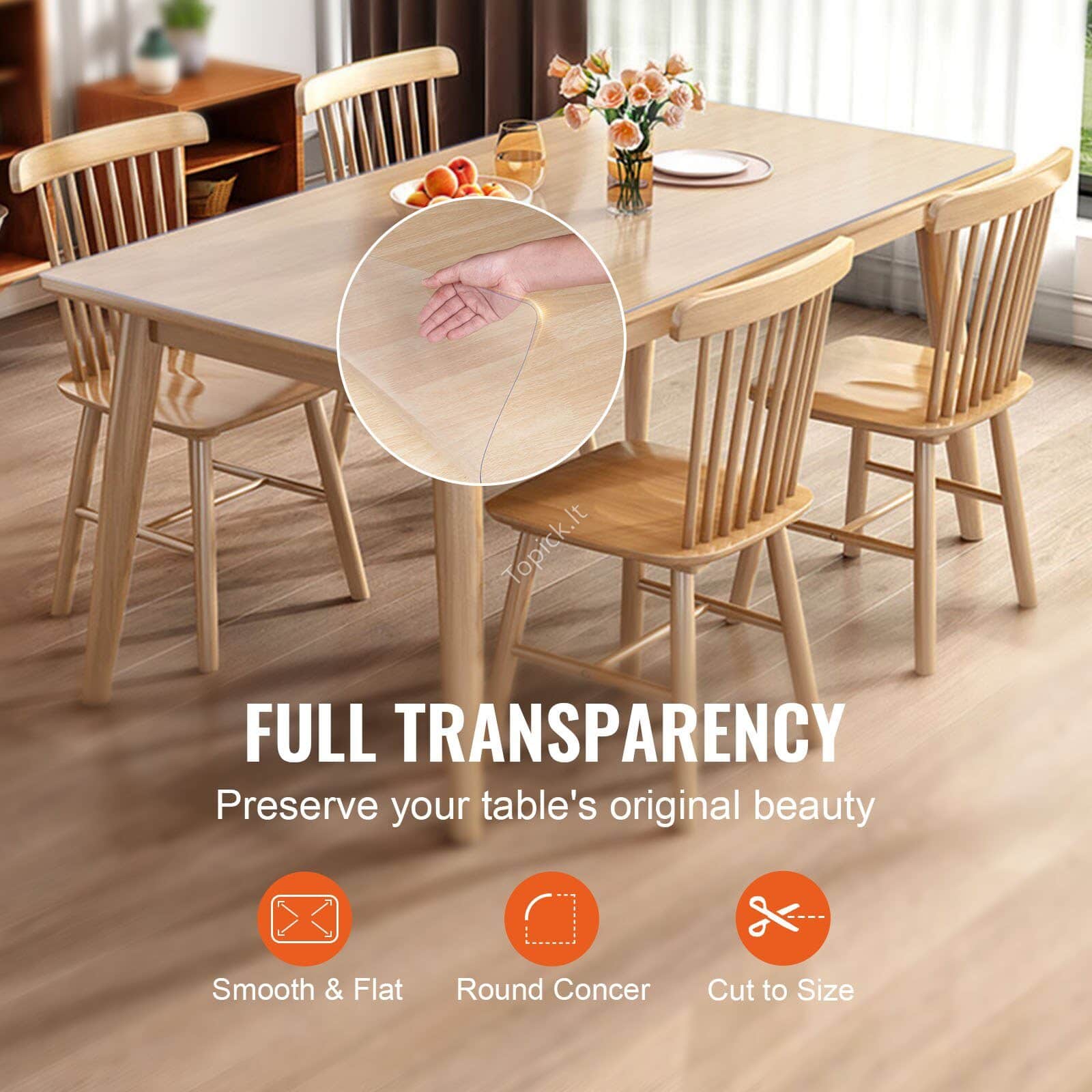 🛡️ Skaidri stalo danga – 91,8 × 185,2 cm, 1,5 mm storio, stačiakampė PVC apsauga nuo karščio, dėmių ir įbrėžimų