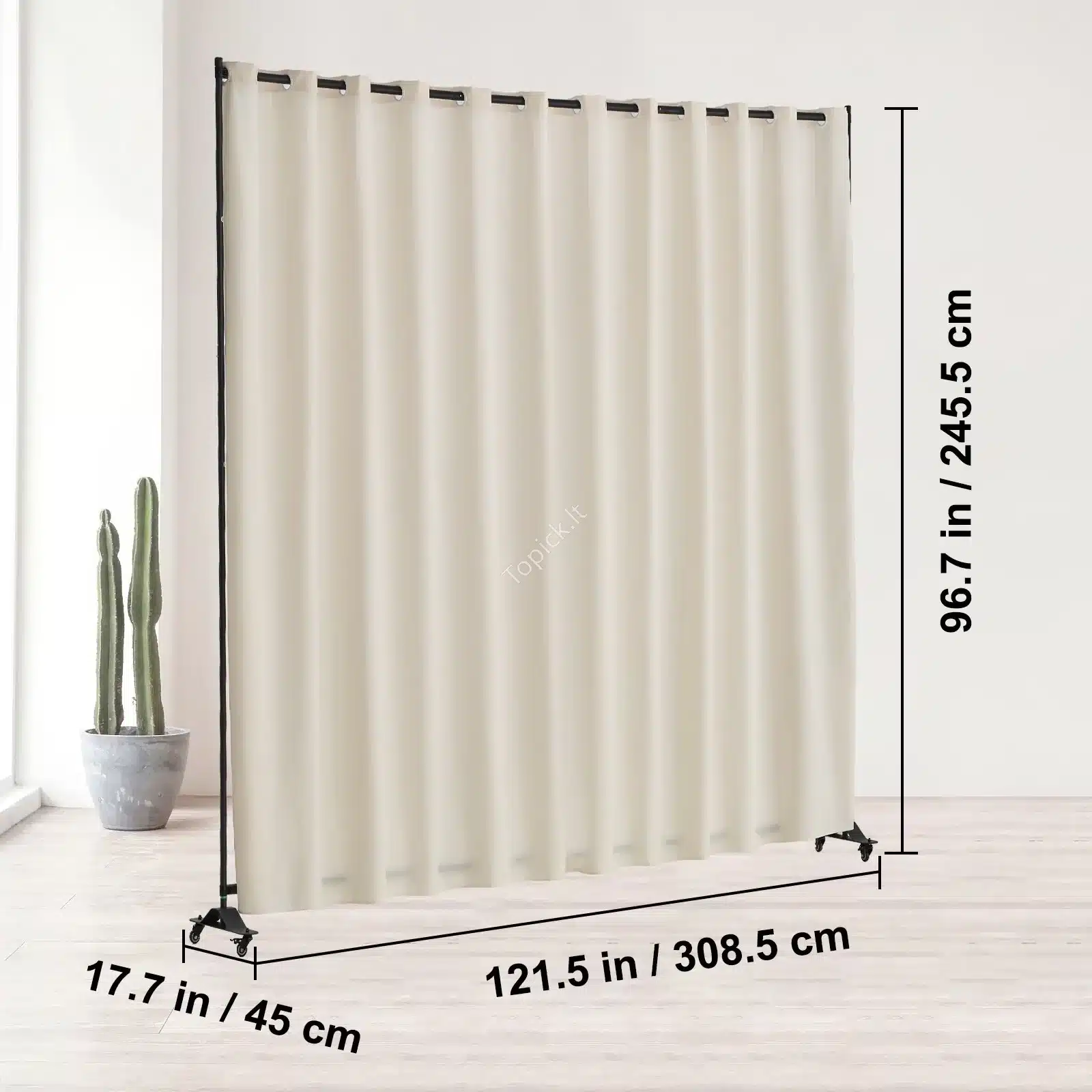 Smėlio spalvos biuro/kambario pertvara su ratukais, 308.5×245.5 cm 🖼️