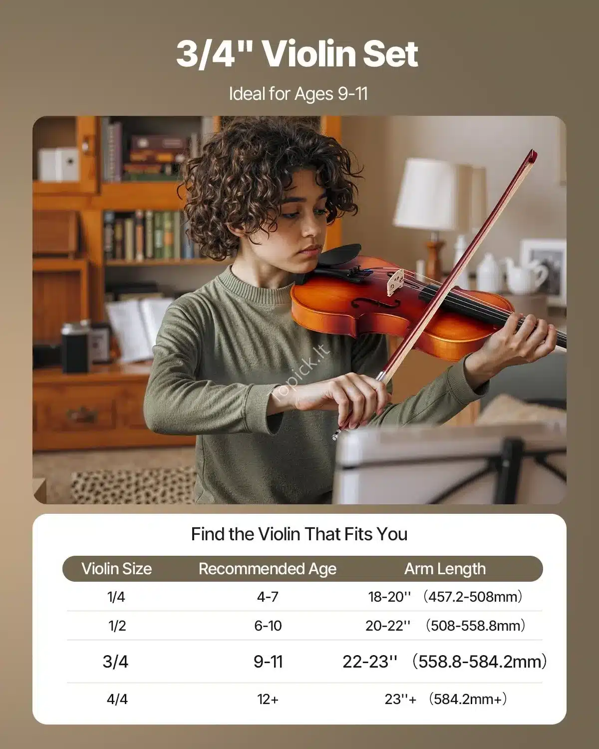 Smuiko komplektas, 3/4 dydžio, eglės ir klevo mediena, rudas, ~57x20x8 cm
