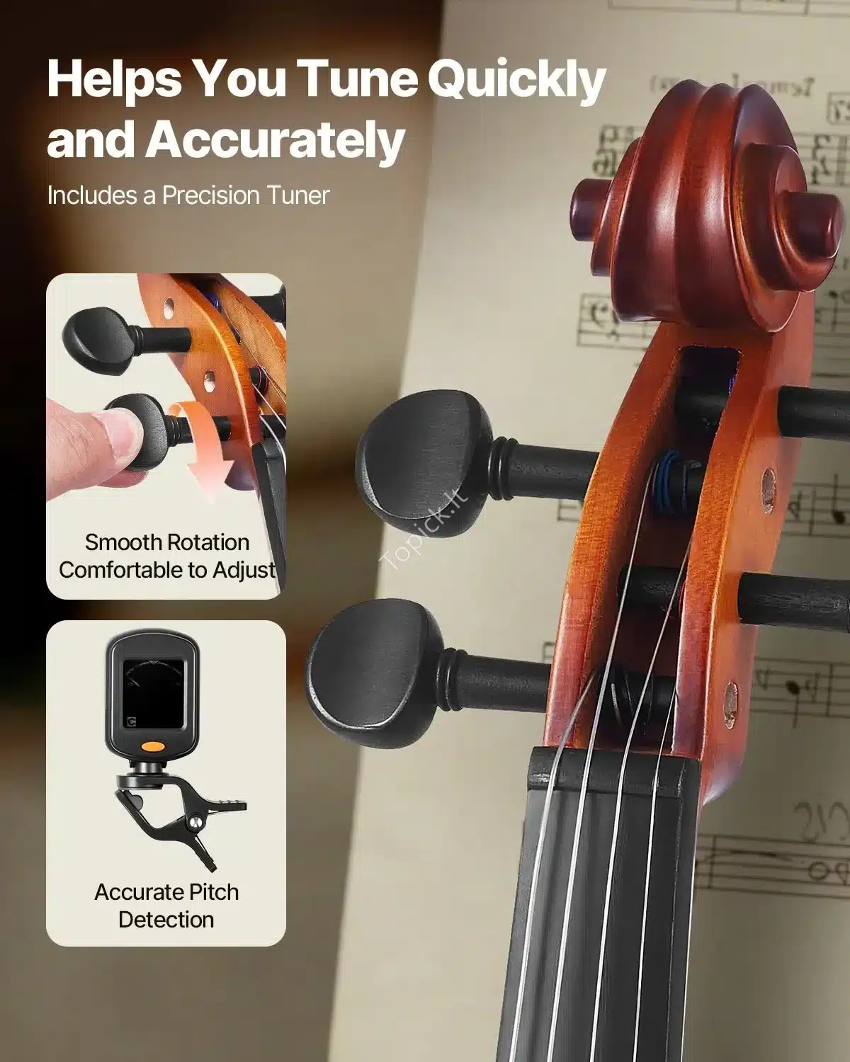 - Smuikas, sukurtas patogiam ir stabiliam grojimui.