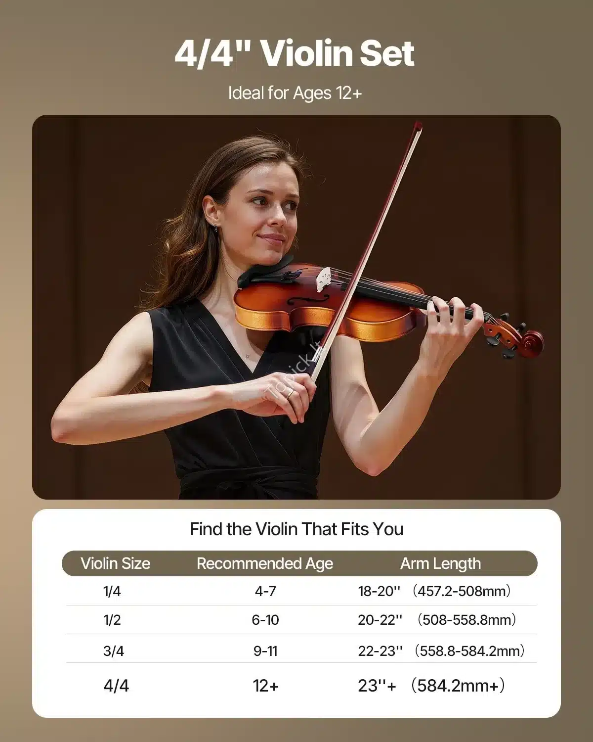 Šis rankų darbo 4/4 dydžio smuikas, pagamintas iš aukštos kokybės eglės ir klevo medienos, yra puikus pasirinkimas pradedantiesiems ir studentams. Matinė ruda apdaila suteikia instrumentui klasikinę ir solidžią išvaizdą. Dėl kruopštaus apdirbimo, smuikas pasižymi puikiu rezonansu ir sodriu skambesiu.