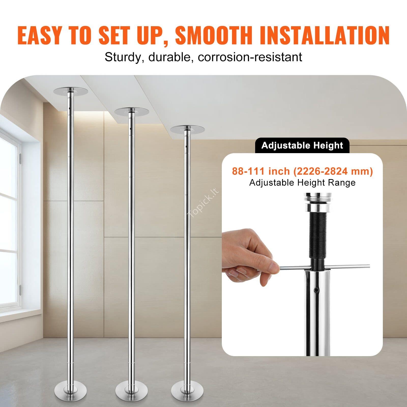 ✨ Profesionalus reguliuojamas šokio stulpas – 222,6–282,4 cm | Sukamasis + statinis režimas, sidabrinis, namams ir sporto studijoms