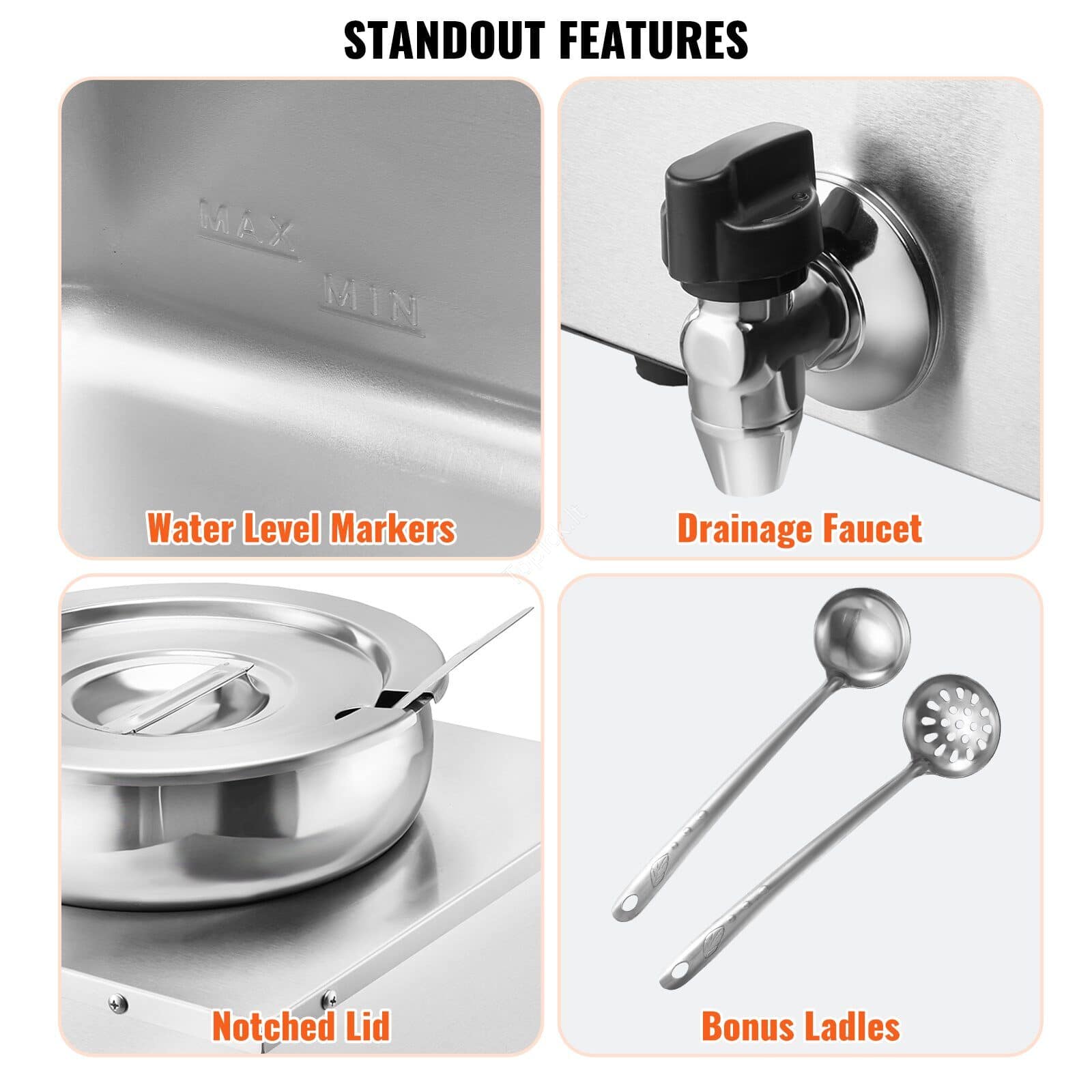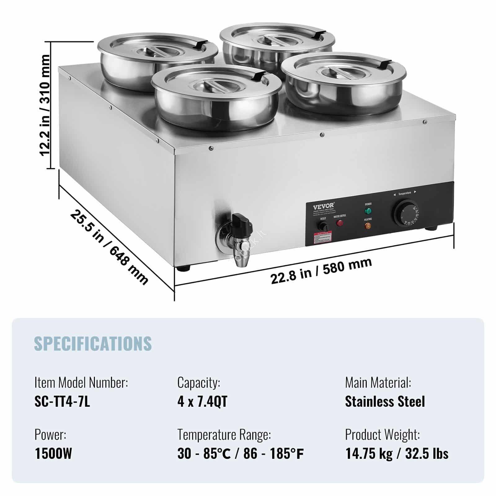 Ieškote patikimos ir talpios profesionalios sriubų šildymo stoties? Ši 4 puodų šildymo sistema (chafing dish / soup station) – idealus pasirinkimas maitinimo verslui, kuris nori vienu metu šildyti ir patiekti net 4 skirtingus patiekalus.