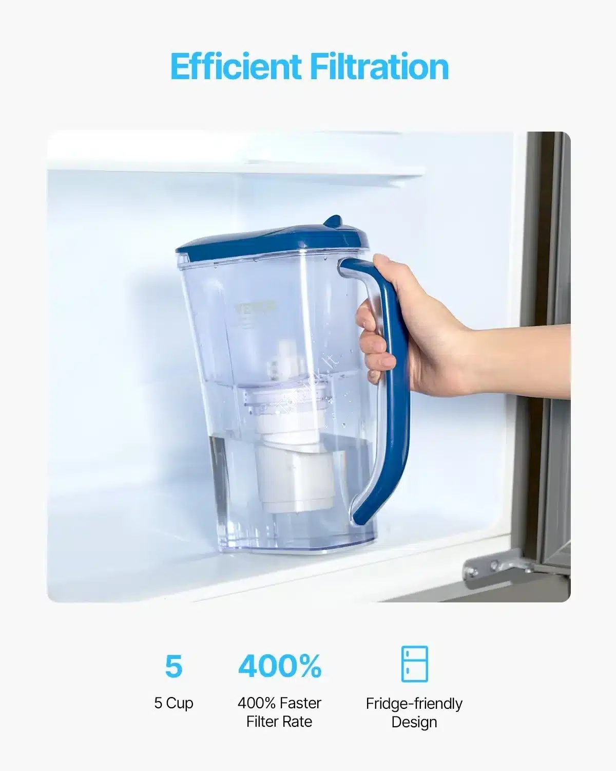 - Greitis: vandens filtravimo procesas trunka vos 1 minutę.