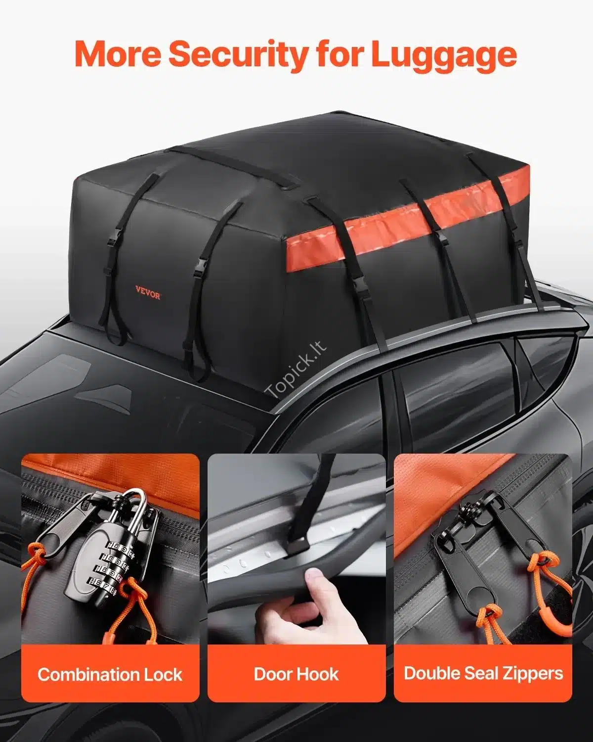 ✅ Atsparumas vandeniui – pagaminta iš 840D PVC medžiagos, bagažinė apsaugo jūsų daiktus nuo lietaus, sniego ir drėgmės. Hipoalerginės siūlės ir užtrauktukas su vandeniui atspariu dizainu užtikrina papildomą apsaugą.