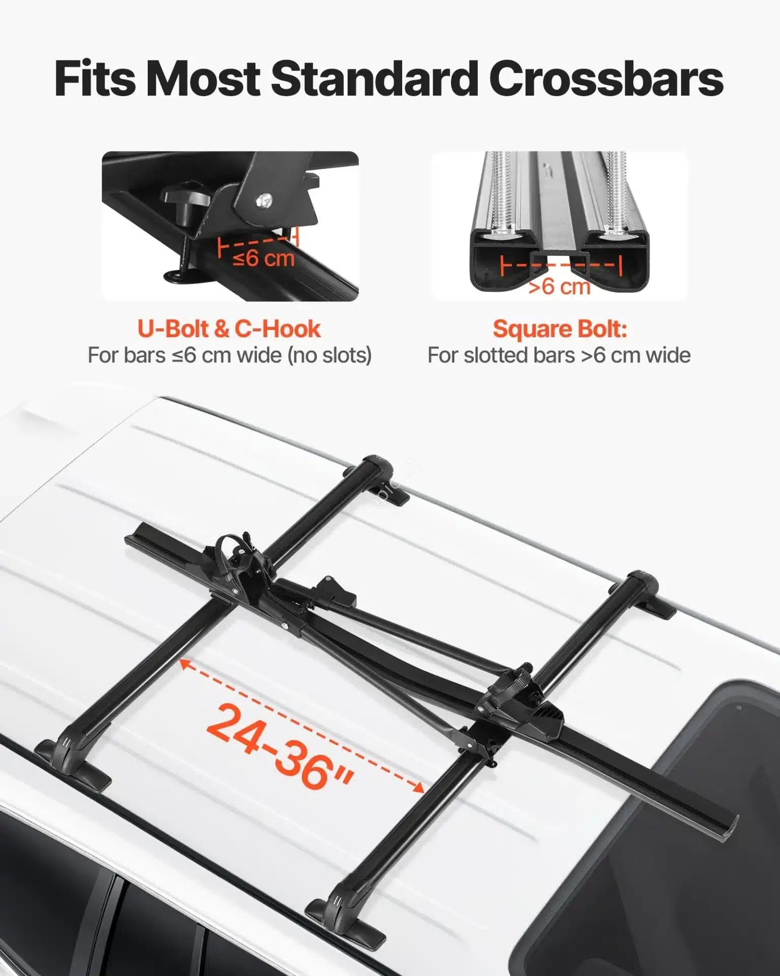 Šis stogo dviračio laikiklis tinka daugumai standartinių stogo bagažinių, įskaitant ovalias, kvadratines ir OEM bagažines. Suderinamas su įvairiais varžtais ir laikikliais, todėl puikiai tinka tiek miesto, tiek kalnų dviračiams.