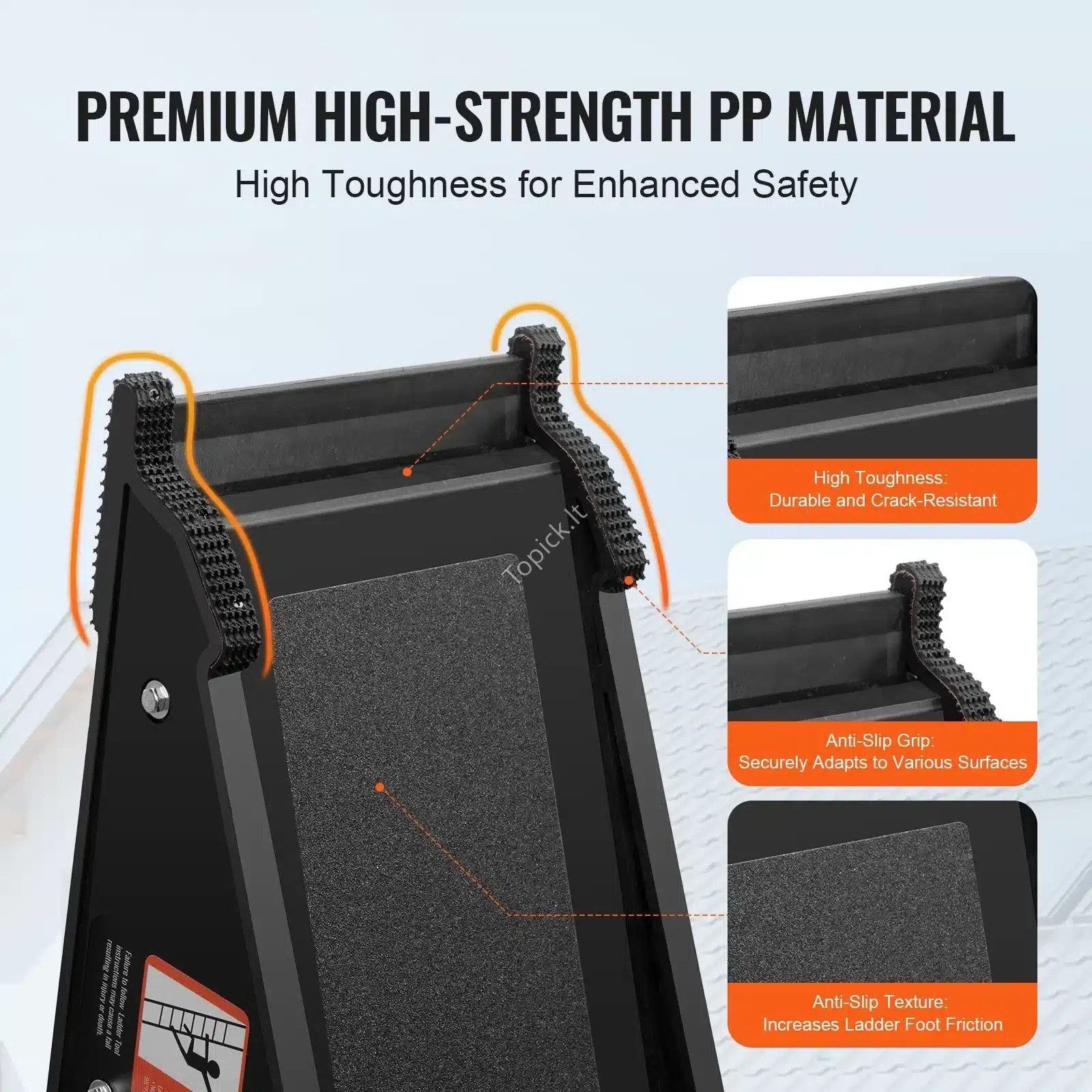 Šis stogo kopėčių stabilizatorius suprojektuotas užtikrinti maksimalų saugumą ir stabilumą dirbant ant įvairių paviršių. Pagamintas iš aukštos kokybės PP medžiagos, jis tinka įvairių tipų kopėčioms ir stogų dangoms. Stabilizatorius sumažina slydimo riziką ir leidžia dirbti patikimai bei saugiai tiek profesionalams, tiek namų meistrams.