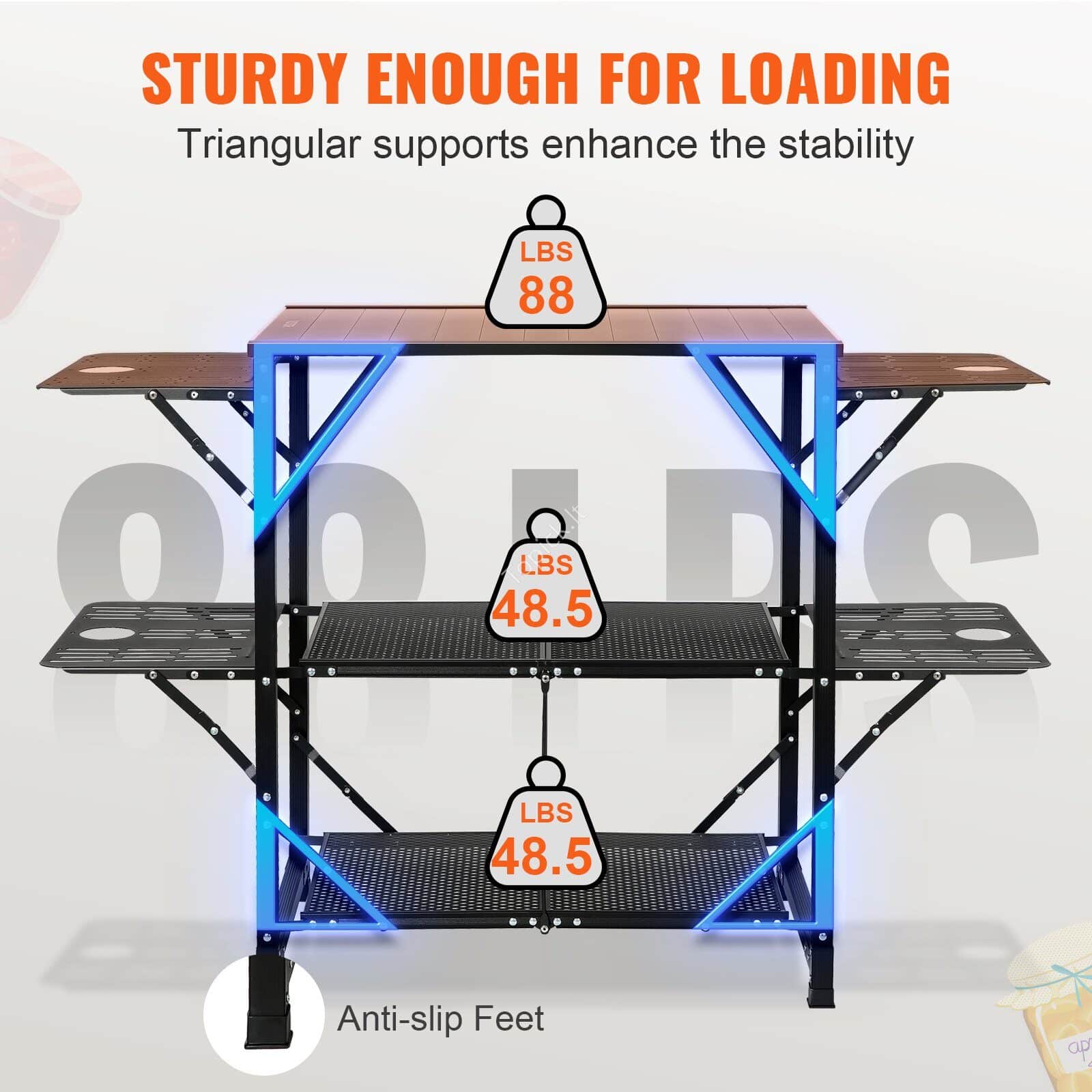 ✨ Ieškai patikimos ir mobilios virtuvėlės lauko gaminimui? Ši nešiojama stovyklavimo gaminimo stotis su šoninėmis sienelėmis ir dviem lentynomis – praktiškas sprendimas stovyklavimui, piknikui ar išvykoms prie jūros.