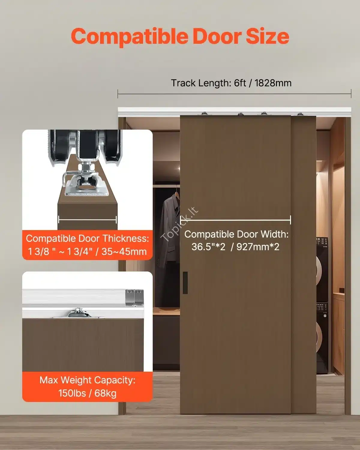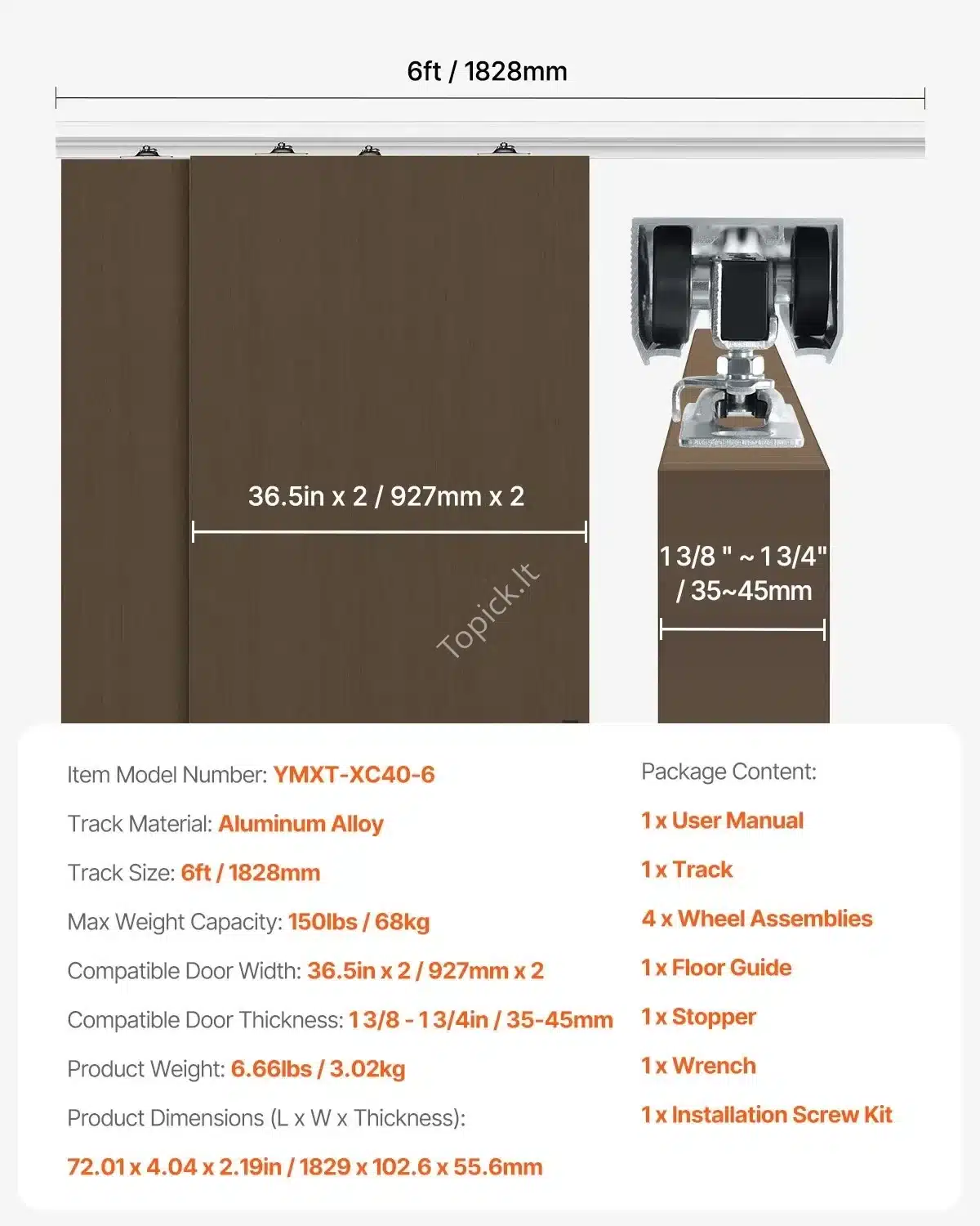 Stumdomų durų furnitūra, dvigubi bėgeliai, 1.83 m / 68 kg 🚪