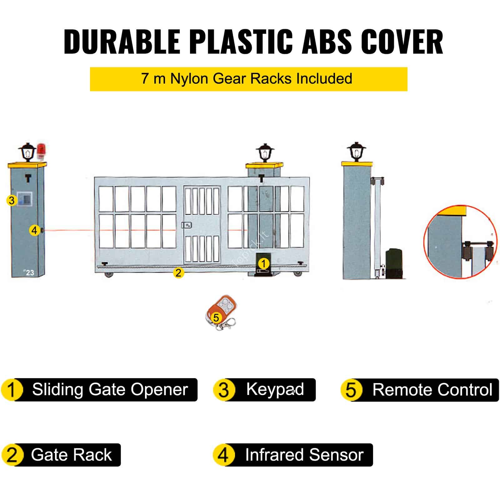 - Stumdomų vartų atidarytuvas pagamintas iš patvaraus ABS plastiko, gryno vario variklio ir cinkuoto lakštinio plieno pagrindo.
