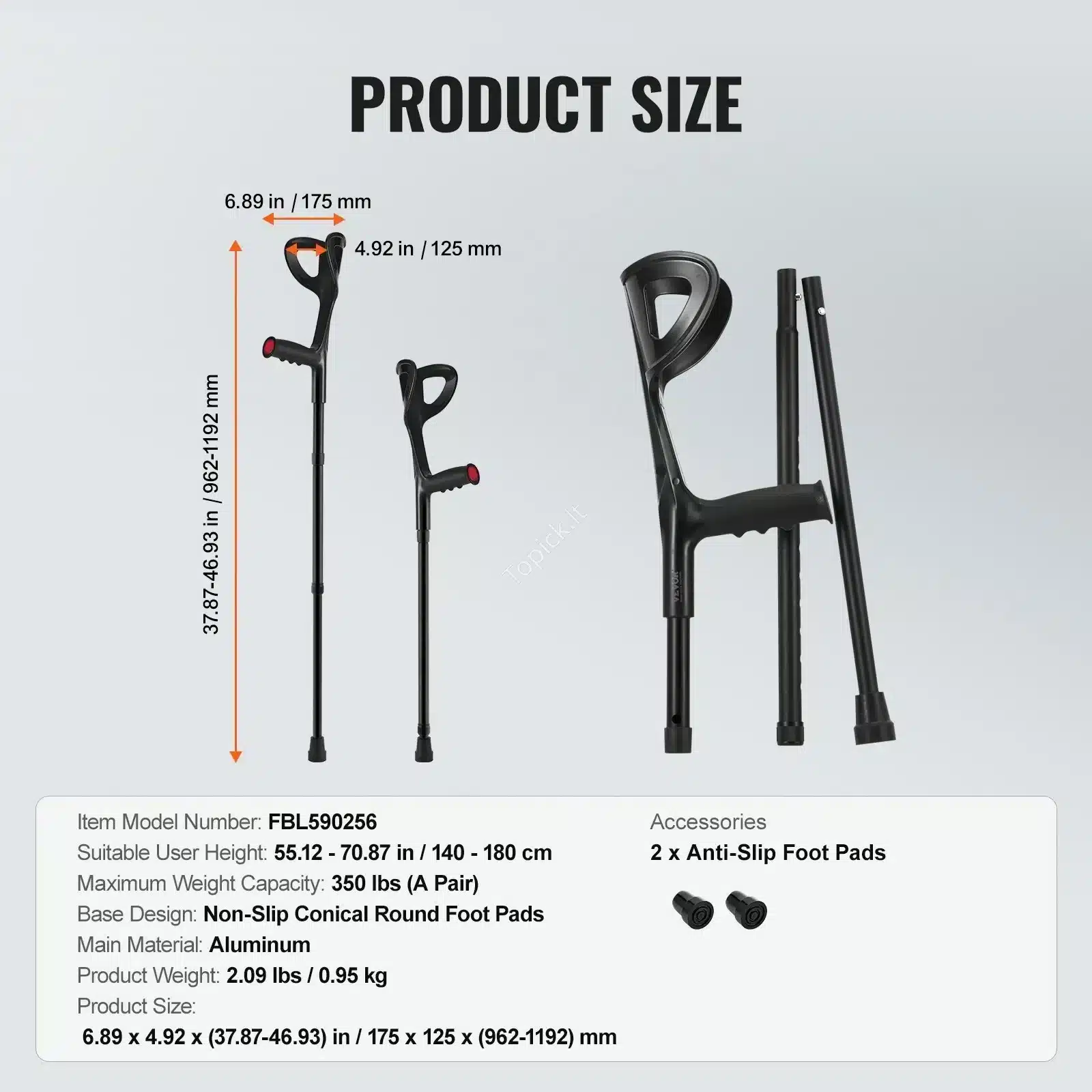 - Lengvumas ir Patvarumas: Dėl aliuminio konstrukcijos ramentai yra itin lengvi (0,95 kg/vnt.), todėl nevargina rankų, tačiau užtikrina maksimalų stabilumą, atlaikydami iki 158 kg svorį.