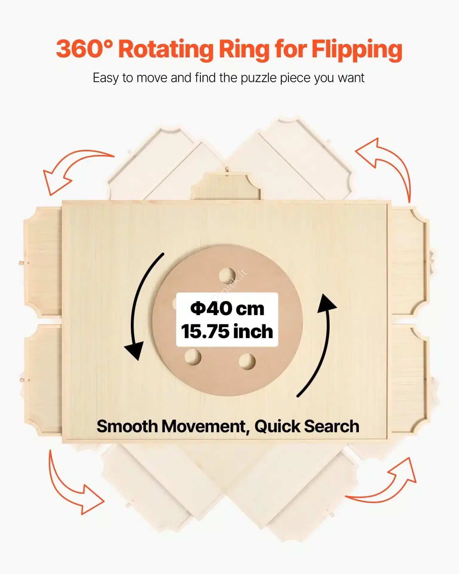 Jei mėgsti iššūkius ir dažnai dėlioji dideles, 1500 detalių puzles, bet nori tvarkos ir patogumo, šis modelis yra idealus sprendimas. Jis ne tik padės palaikyti detalių tvarką, bet ir tau nereikės lankstytis bandant pasiekti kitą puzlės pusę!