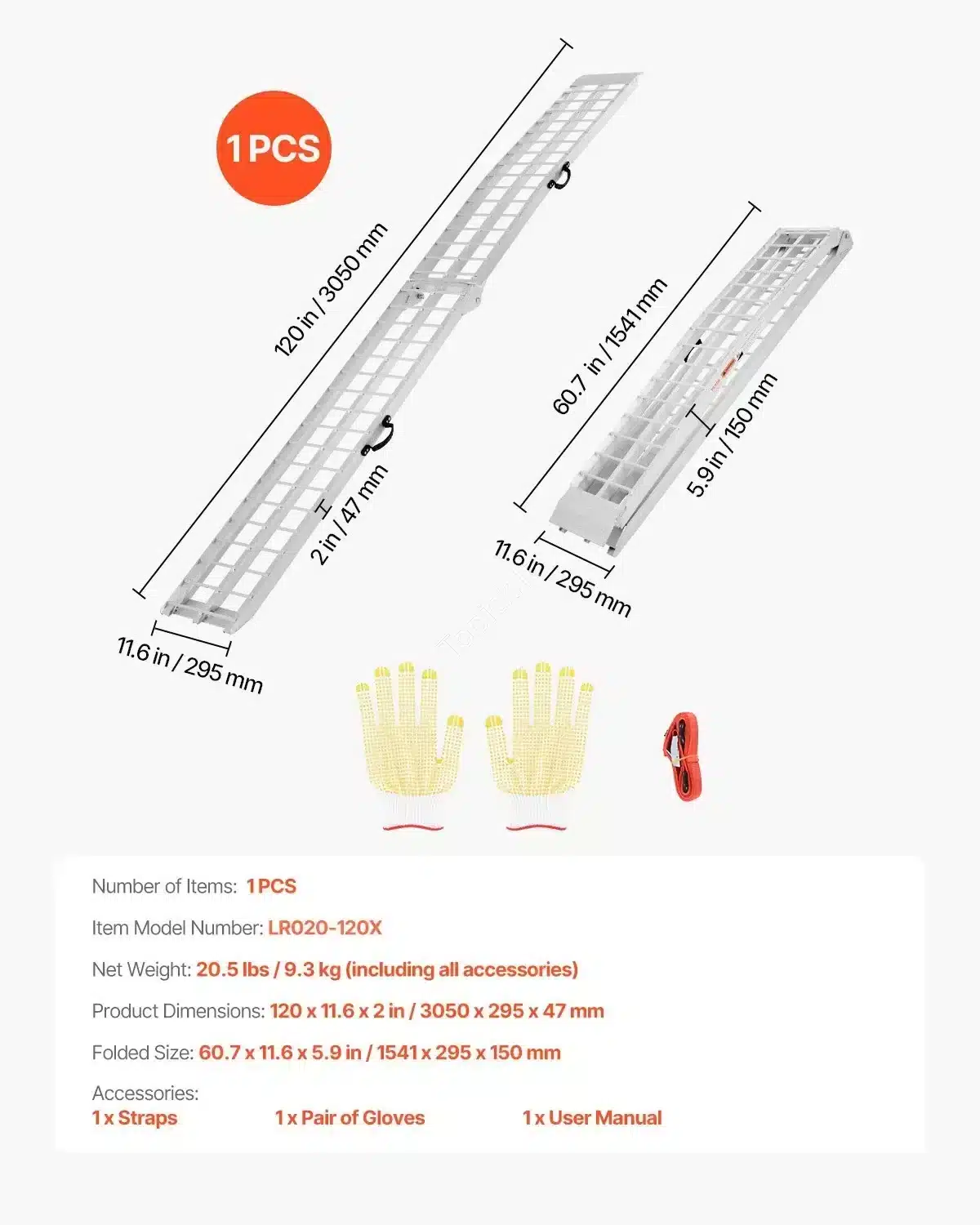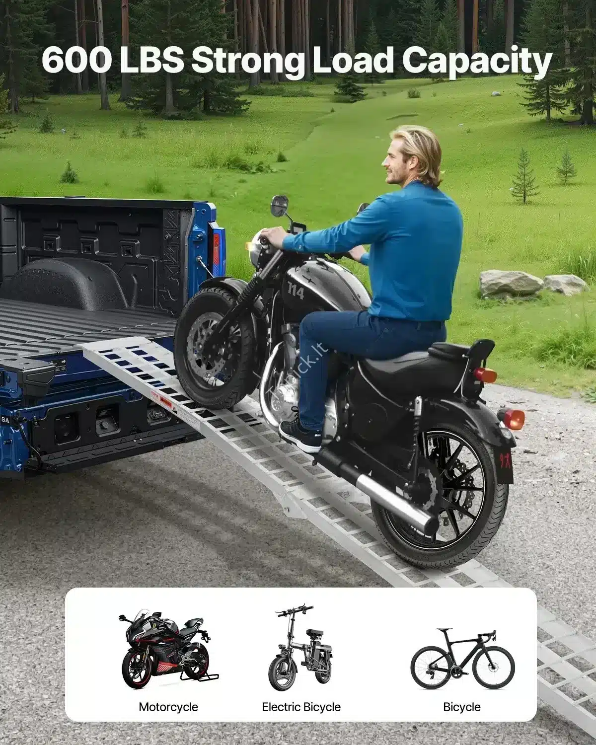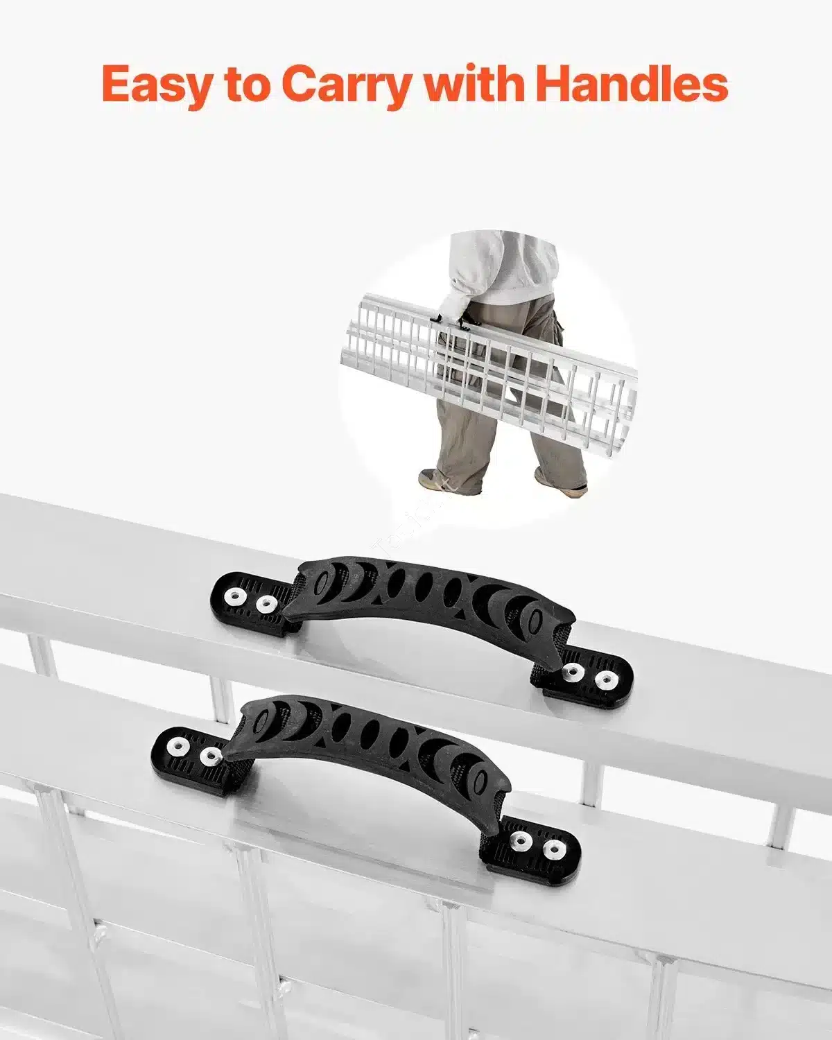 - Nešiojama ir TvirtA: Pagaminta iš aukštos kokybės aliuminio, rampa yra pakankamai lengva (apie 9,3 kg), bet atlaiko net 272 kg apkrovą (vienai rampai).