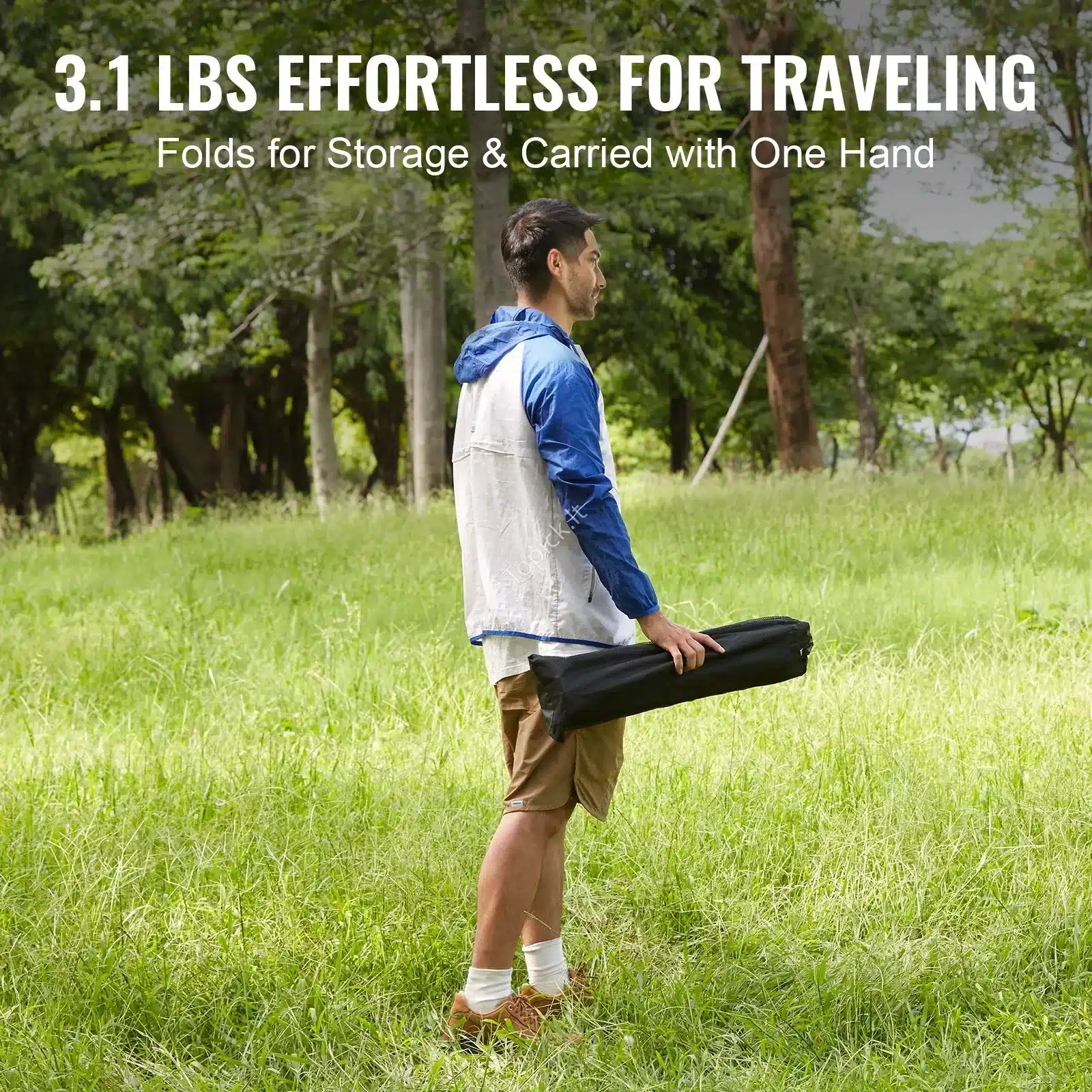 Lengvas ir kompaktiškas, tad tilps net į mažą bagažinę ar kuprinę.
