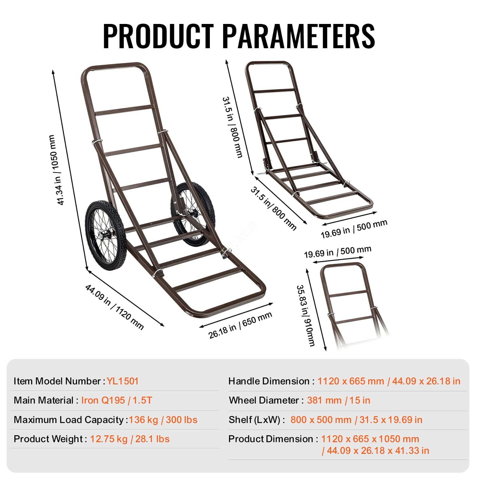 Sulankstomas elnių ir žvėrių transportavimo vežimėlis – 136 kg keliamoji galia, tvirtas plieninis rėmas, dideli ratai ir kompaktiškas sulankstymas – idealus sprendimas medžiotojams žvėrių pernešimui miške ar laukuose