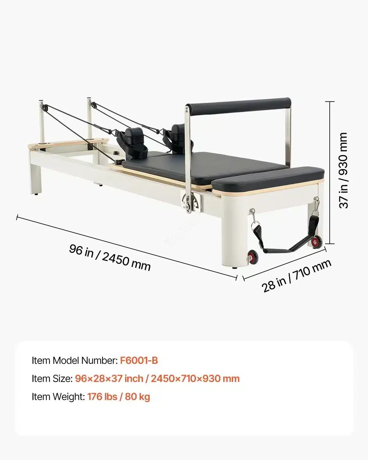 Sulankstomas Pilates Reformeris, Aliuminio/Plieno Rėmas, 208 x 56 x 72,5 cm (Išskleistas), Iki 181,44 kg 🏡✈️💪