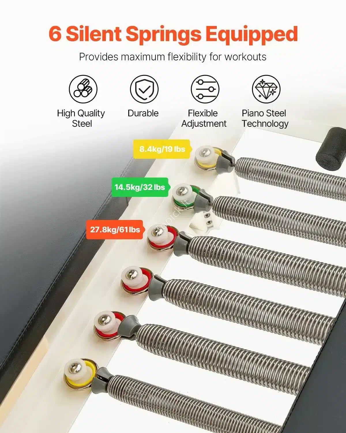 - Pilno Kūno Treniruotė: Su 5 spyruoklių atsparumu gali treniruoti visą kūną: nuo giliųjų raumenų stiprinimo iki kojų ir rankų tonizavimo.