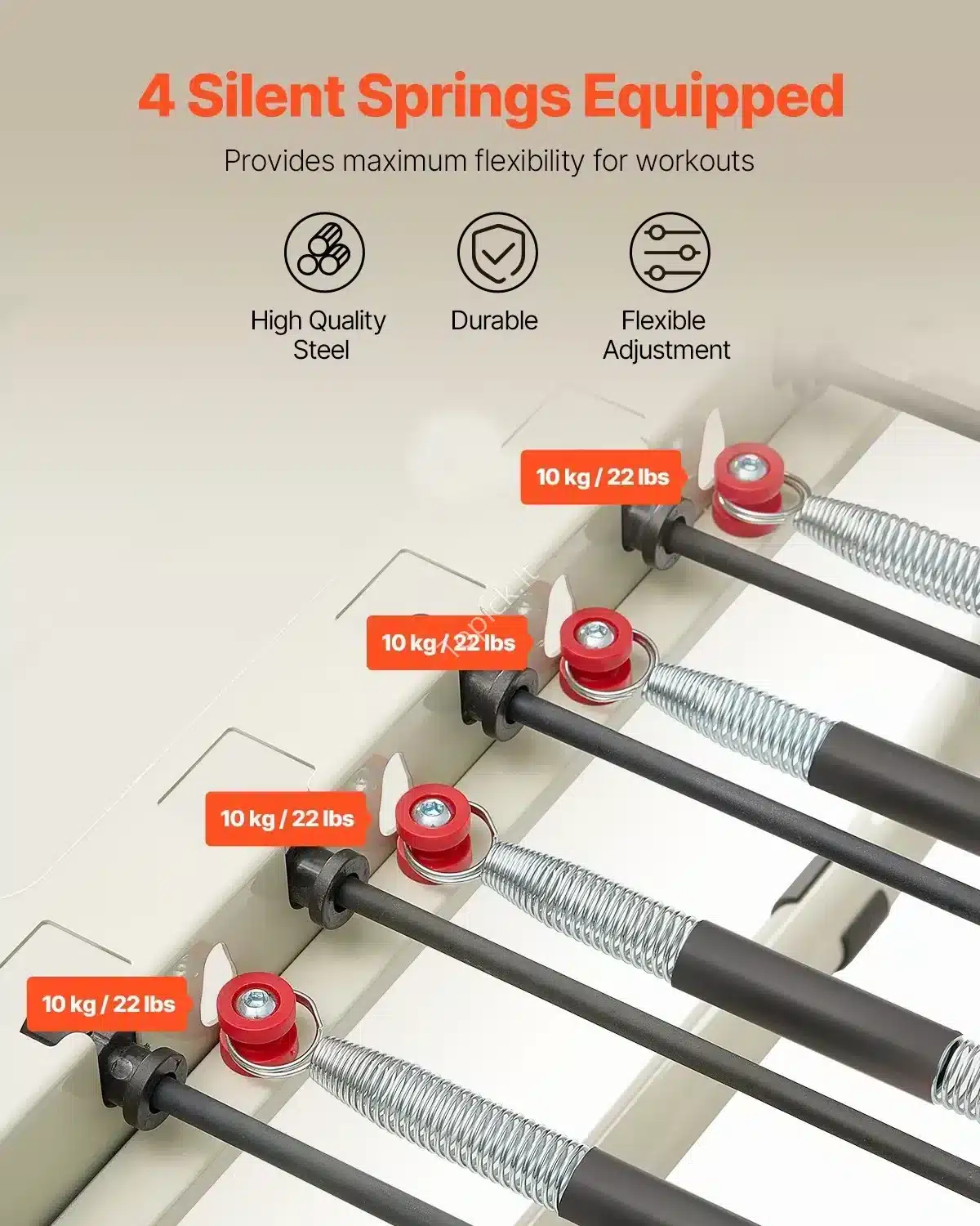 - Atsparumo Sistema: 5 Aukštos Kokybės Spyruoklės (dažniausiai 3 stiprios ir 2 lengvos), leidžiančios parinkti pasipriešinimą pagal tavo poreikius.
